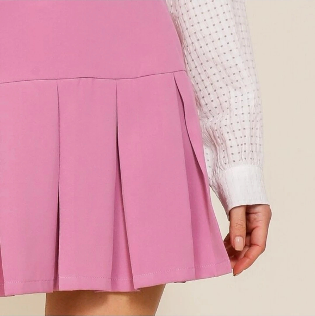 Step into your preppy era with this gorgeous Lumiere pleated mini skirt. Featuring a flattering high-waisted fit and a soft, dusty rose pink hue, it’s the perfect blend of sweet and sophisticated.