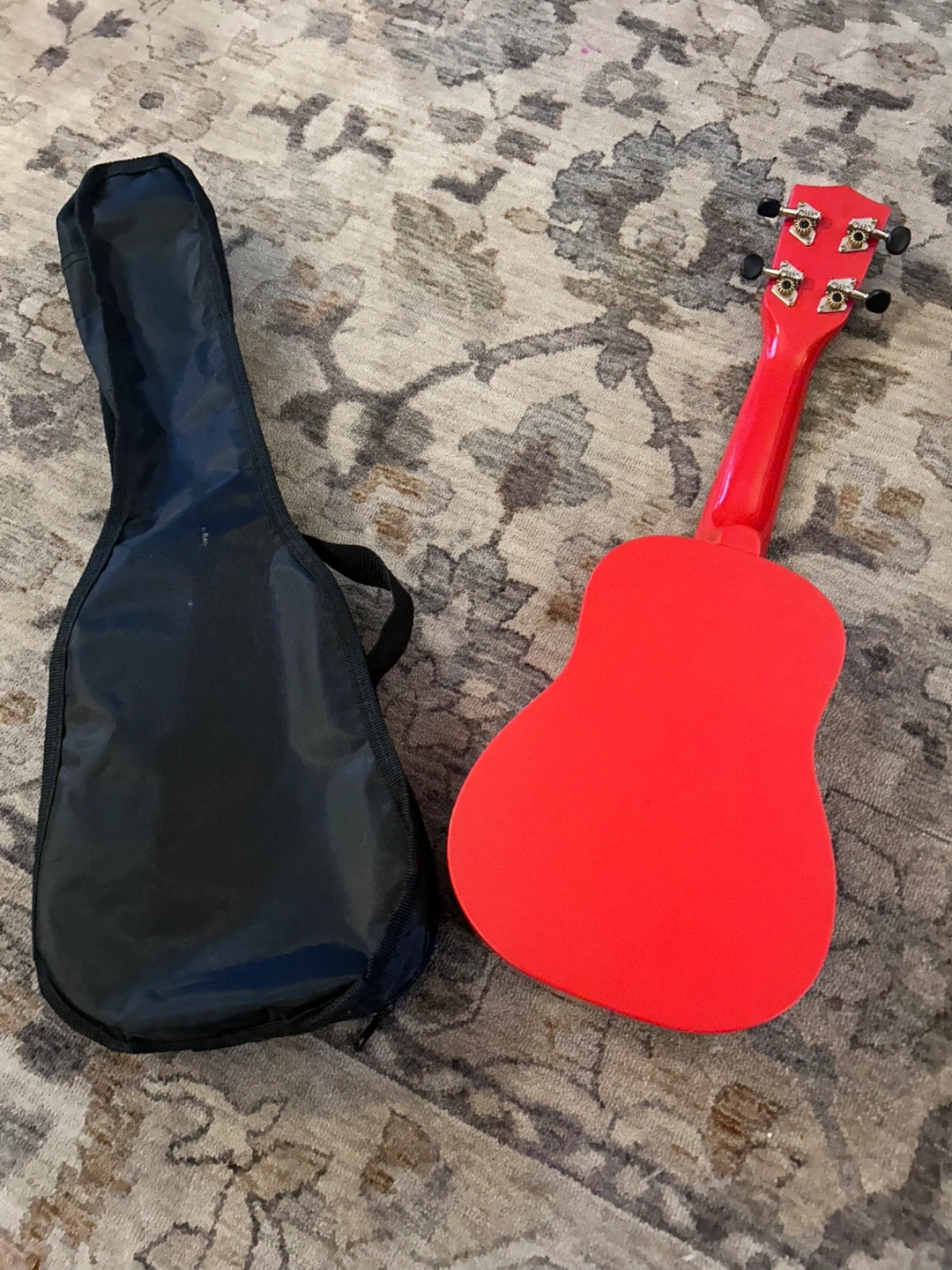 Like new red Denver ukulele with a black gig bag. Great for beginners looking to learn a new skill! Mint condition- giftable.
