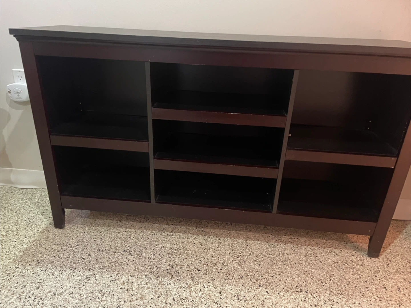 This dark brown media console / book shelves has multiple adjustable shelves for storage. It's great for organizing electronics or books.