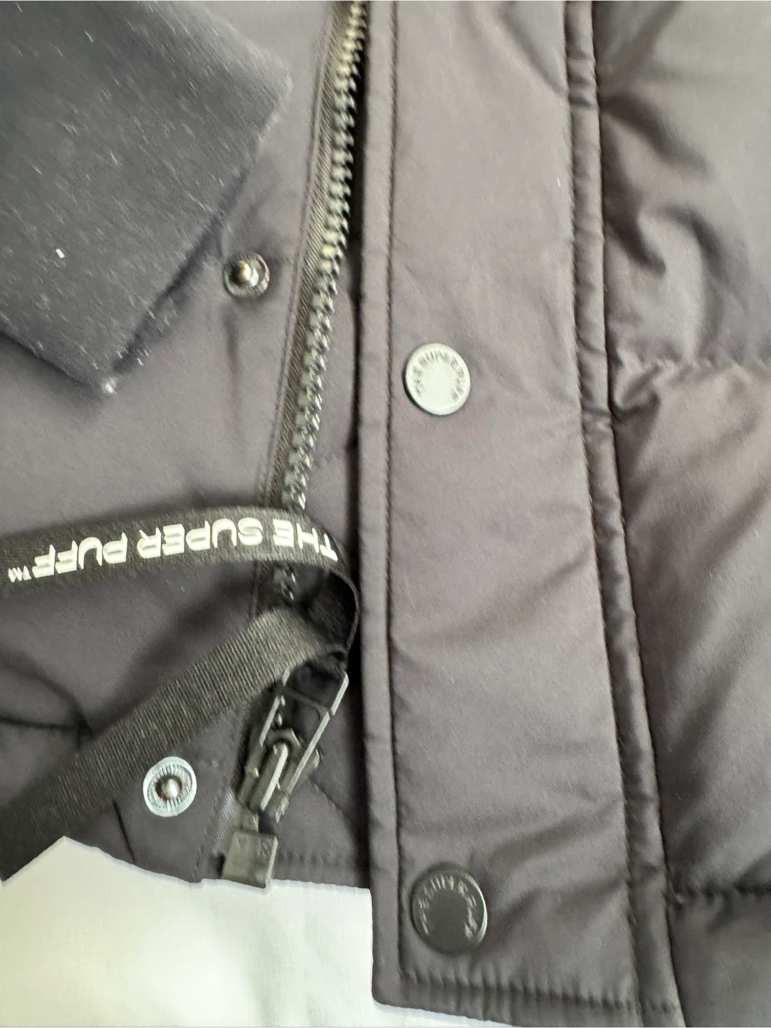 "The Super Puff" jacket is designed for cold weather, featuring 700+ fill power down for superior warmth. It's made with a water-resistant fabric. Cozy brushed pockets are included. This jacket is designed to keep you warm in temperatures as low as -25°C.