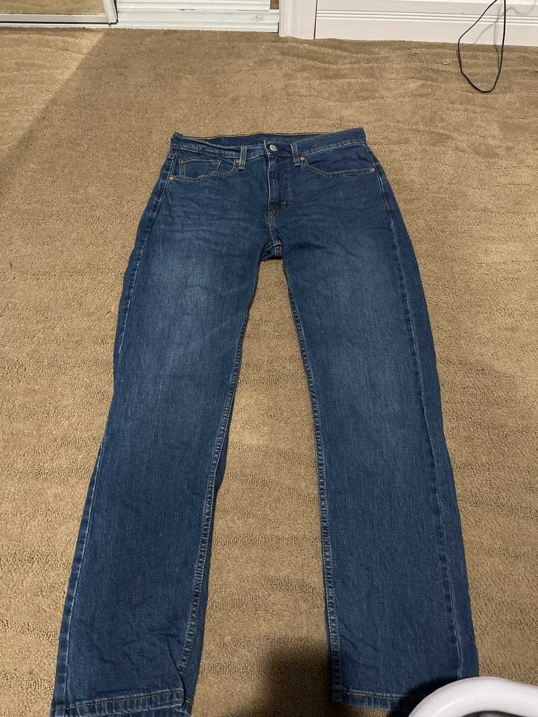 Classic blue denim jeans from Levi's. These are the 505 regular fit model with a button fly. Made from durable denim material.