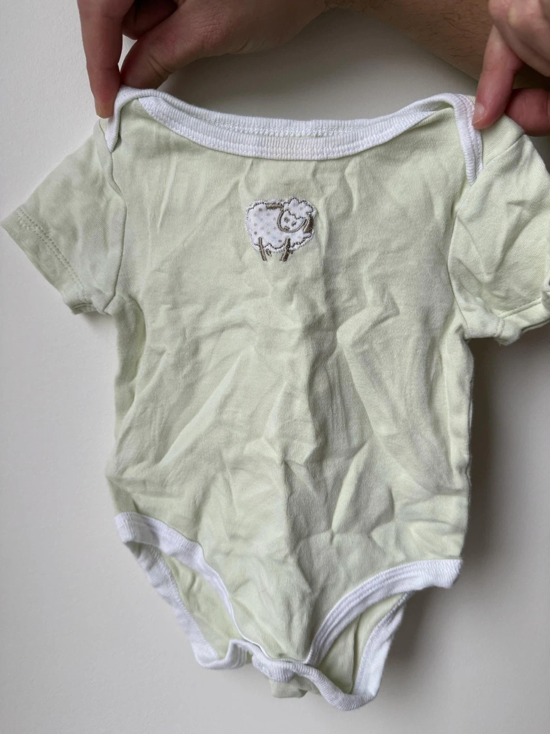 Selling a cute Circo baby bodysuit in size 3-6M! It's a light green color with a sweet little sheep design on the front. Made of 100% cotton, so it's soft and comfy for your little one