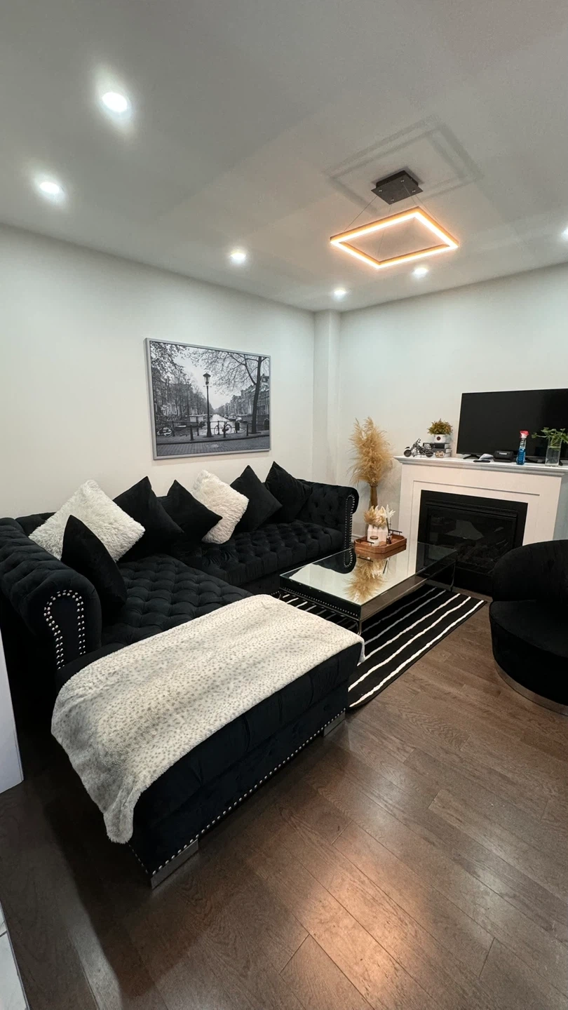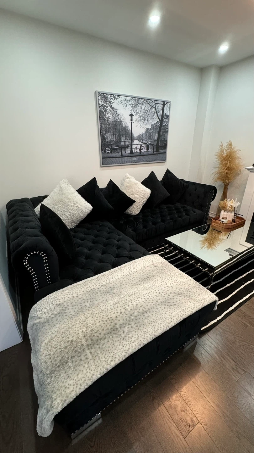 Black Velvet Tufted Sectional Sofa with Silver Studs