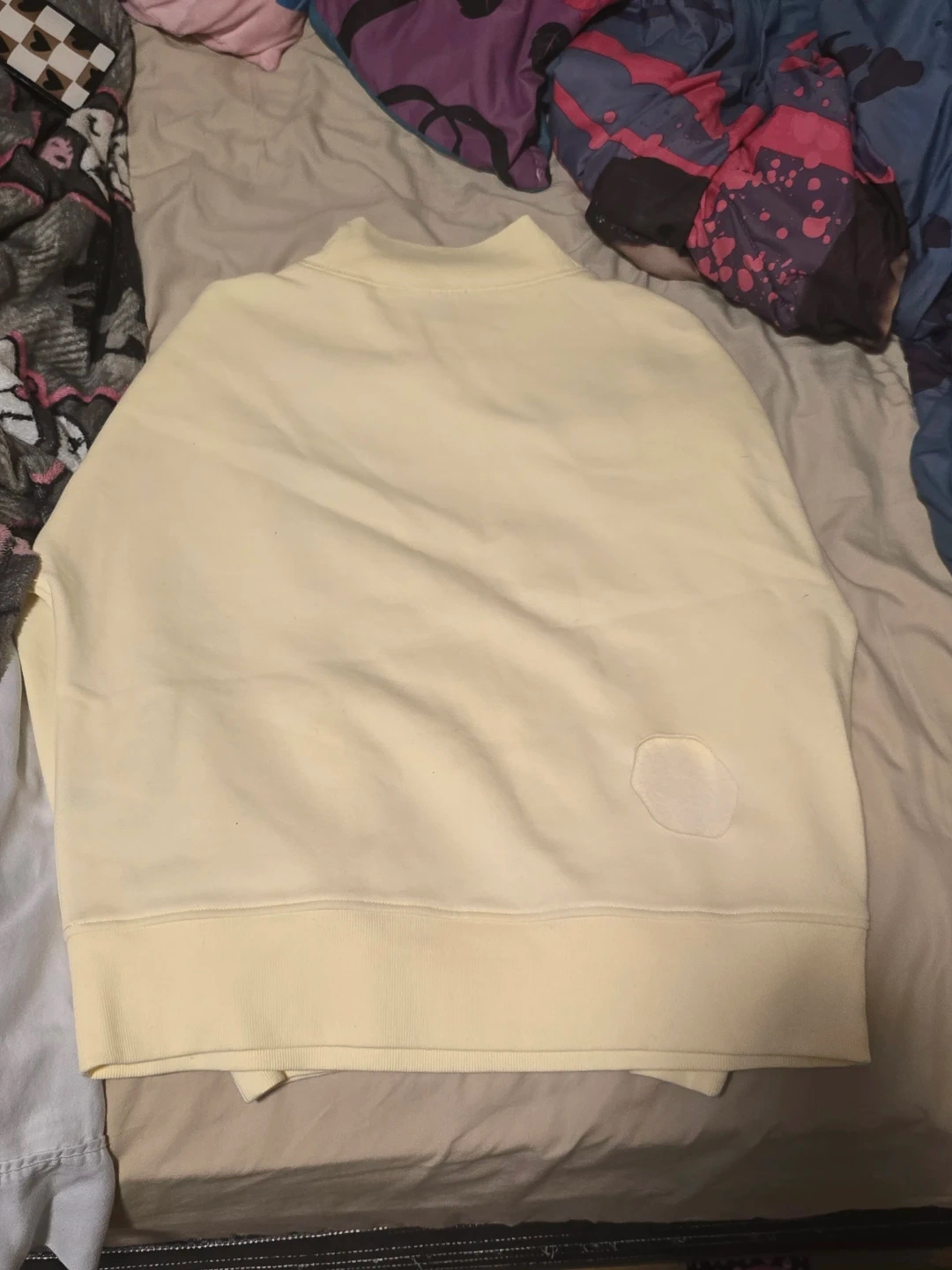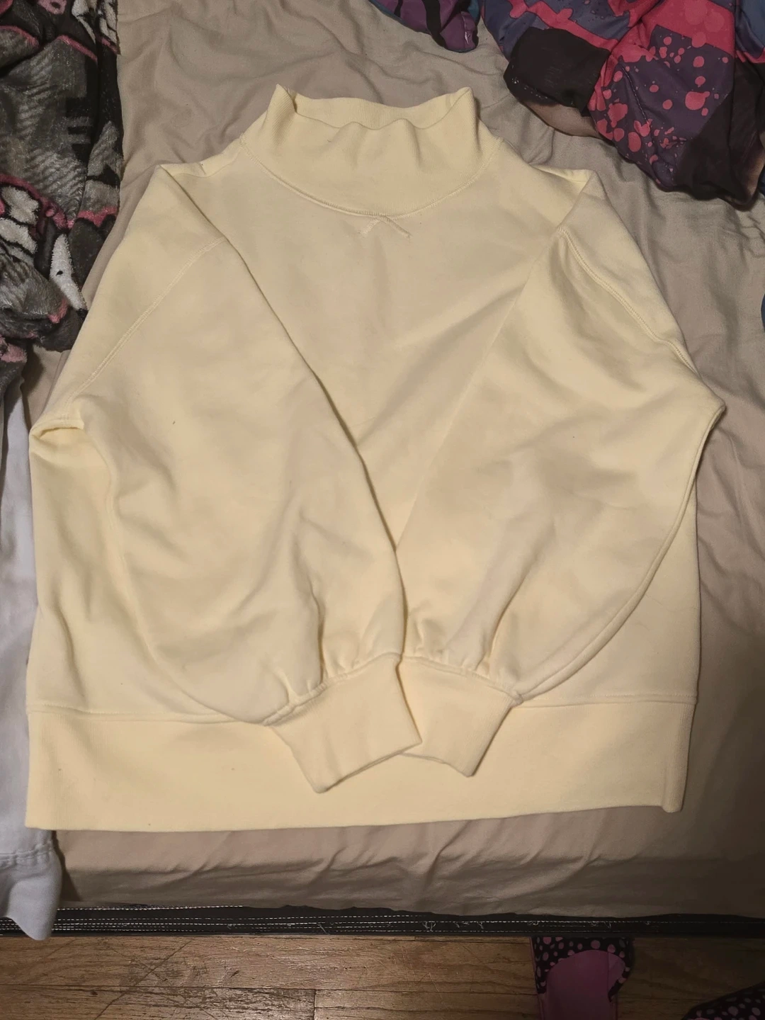Selling a Free Assembly mock neck sweatshirt in size medium. The color is a soft yellow. It has a hole in the back. But was never used.