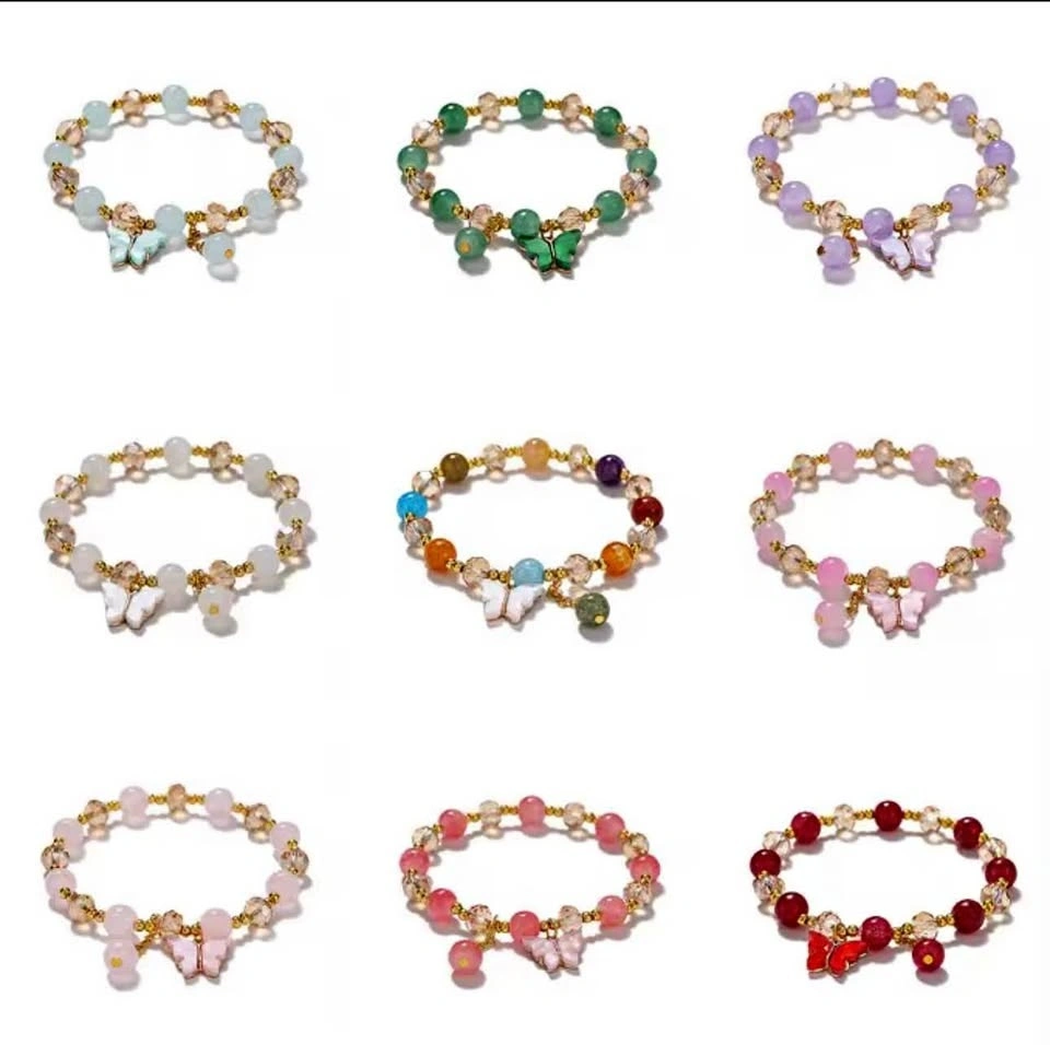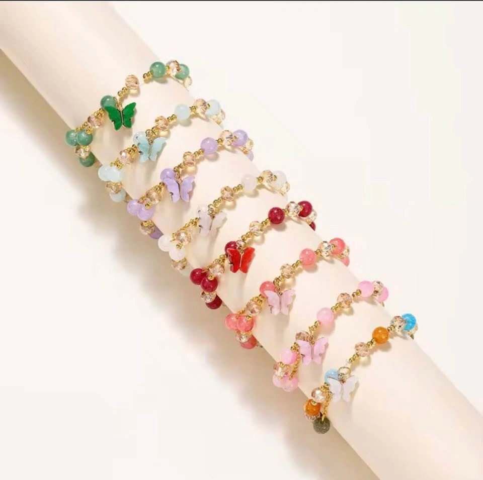 Beautiful handmade-style beaded bracelets featuring elegant butterfly charms. Each bracelet is designed with colorful beads and gold-tone accents, giving a classy yet playful look. Perfect for everyday wear, gifting, or matching outfits.