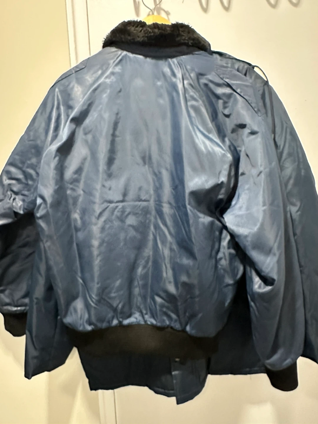 Blue Bomber Jacket with Faux Fur Collar