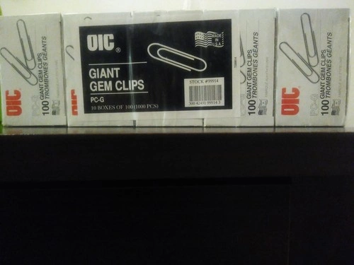 10 boxes of Officemate Giant Premium Paper Clips, with 100 clips per box for a total of 1000 clips.