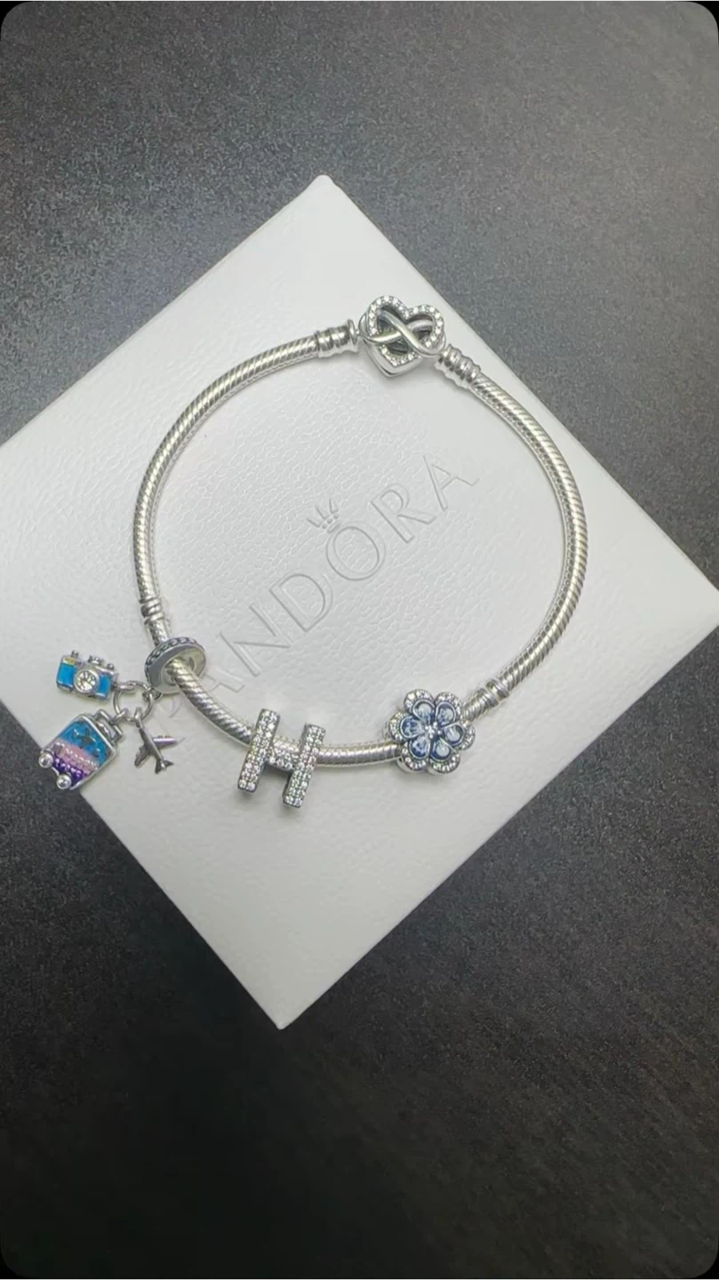 Selling a lovely Pandora charm bracelet! It's in great shape and comes with a variety of cute charms. Perfect for adding to your collection or starting a new one. The bracelet and charms are all silver. Comes with the original box!