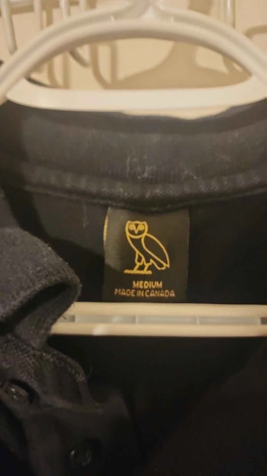 Authentic OVO Classic Owl Polo in Black/Gold. This is a core essential from Drake’s October’s Very Own label. This specific piece features the high-quality "Made in Canada" construction, known for its durable, heavyweight pique cotton and superior fit compared to later releases.