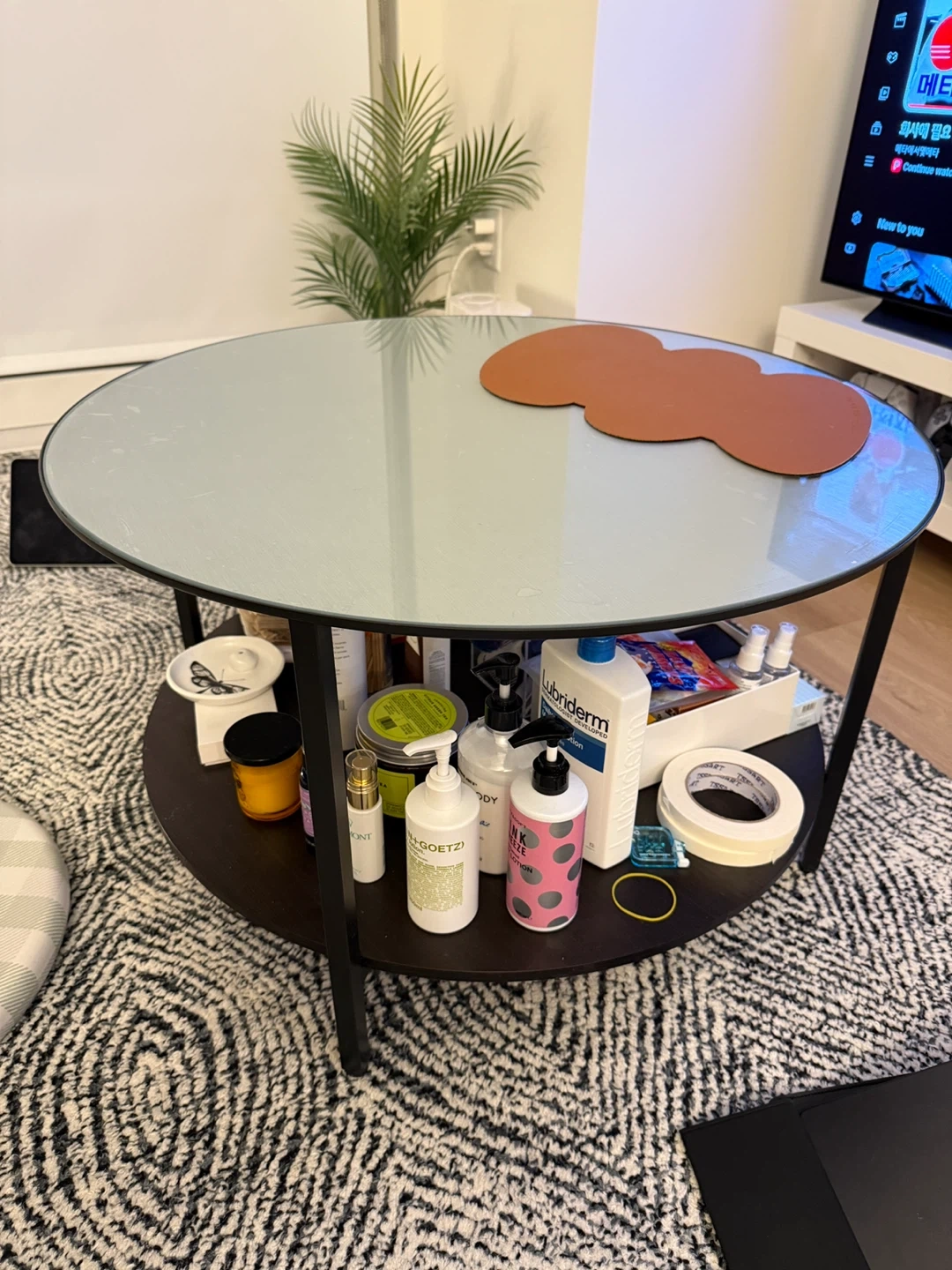 Selling a round glass coffee table.