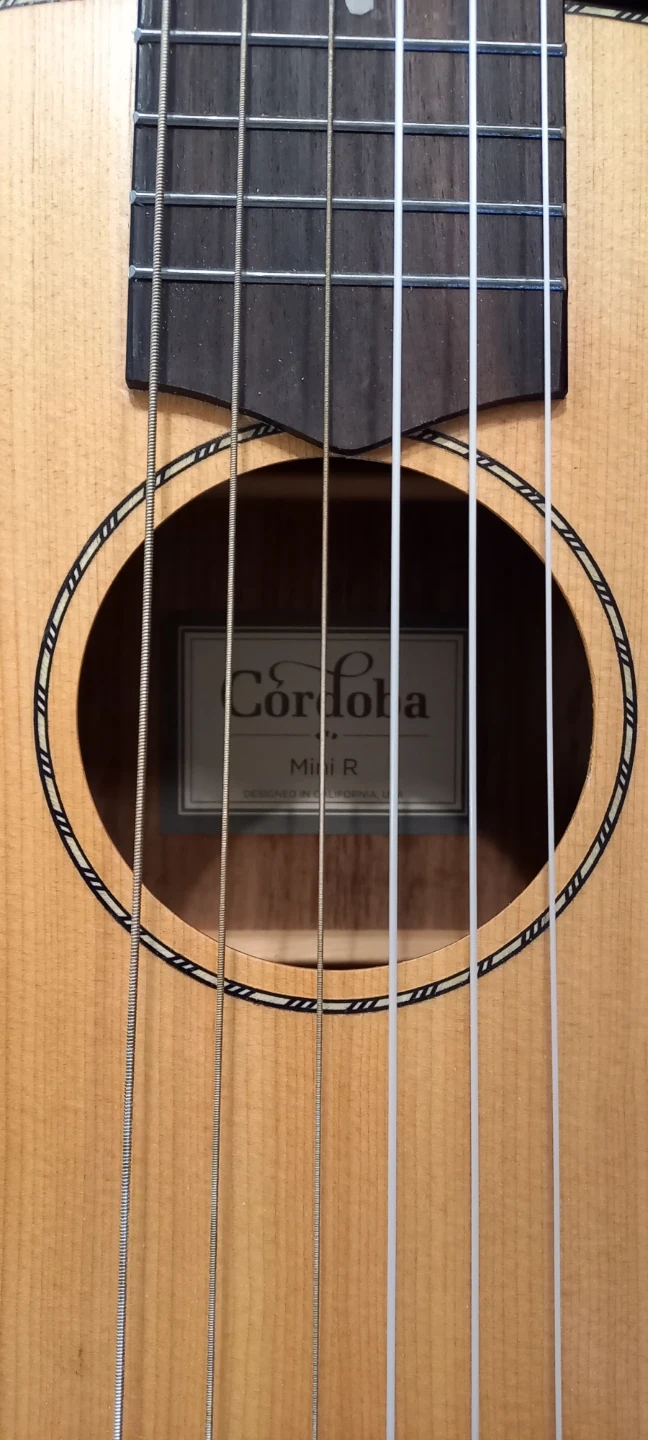 This Cordoba Mini II R nylon string guitar is a great choice for beginner musicians or anyone looking for a compact instrument. It features a beautiful natural finish and comes with a hard case for protection and easy transport. The guitar's construction ensures a warm and pleasant tone.