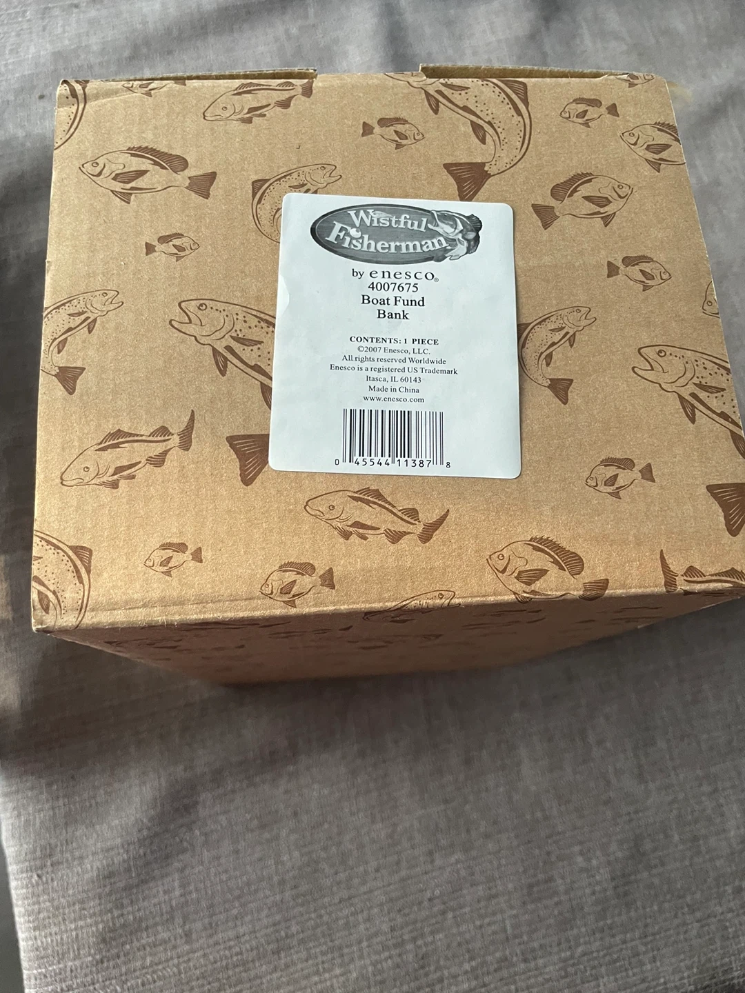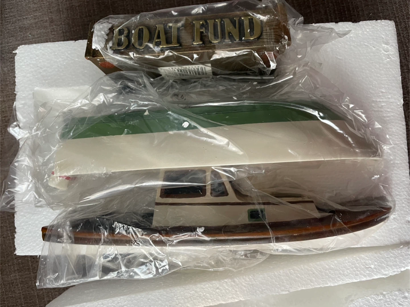 Ceramic bank designed to look like a boat and collect money for a boat!