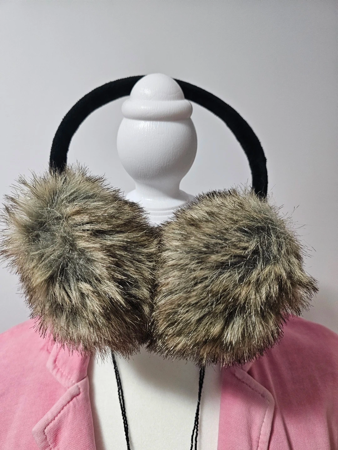 Warm and fuzzy earmuffs for chilly days. These earmuffs are made with a soft faux fur material and a black adjustable band. They offer cozy ear coverage to keep you warm. Perfect for winter strolls!