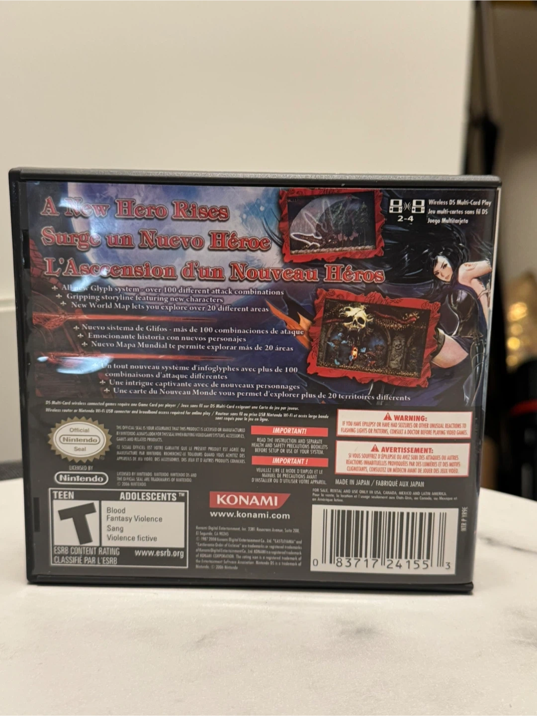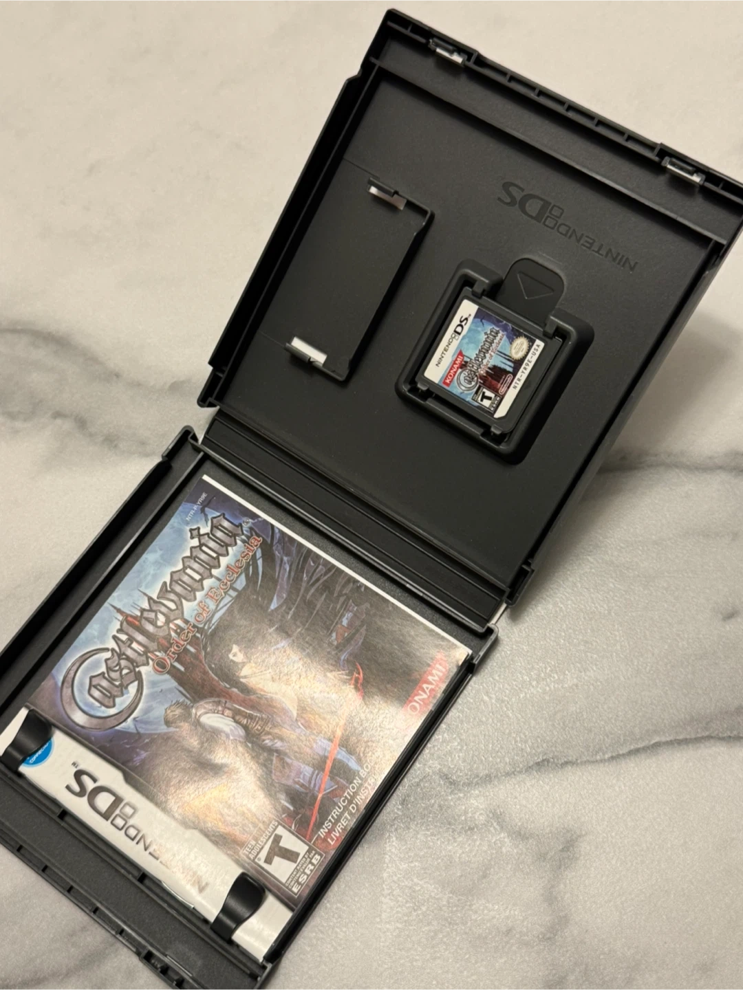 This is the Castlevania: Order of Ecclesia game for the Nintendo DS. It includes the game cartridge and the original manual. This game features 100 different attack combinations and a new world map with 20 different areas. It's rated T for Teen.