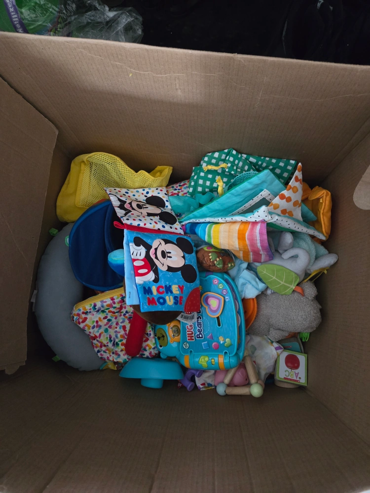 A variety of baby toys including Fisher Price toy, lovevery sensory toys, wooden toys, stuffys, and other assorted toys. Great for 0- 9 months