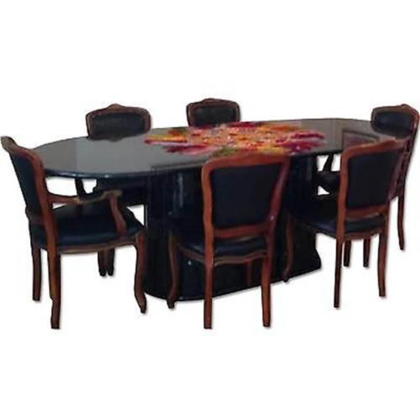 7.5’ Black Granite Dining Table w/ Opalescent Flecks + 6 Chairs