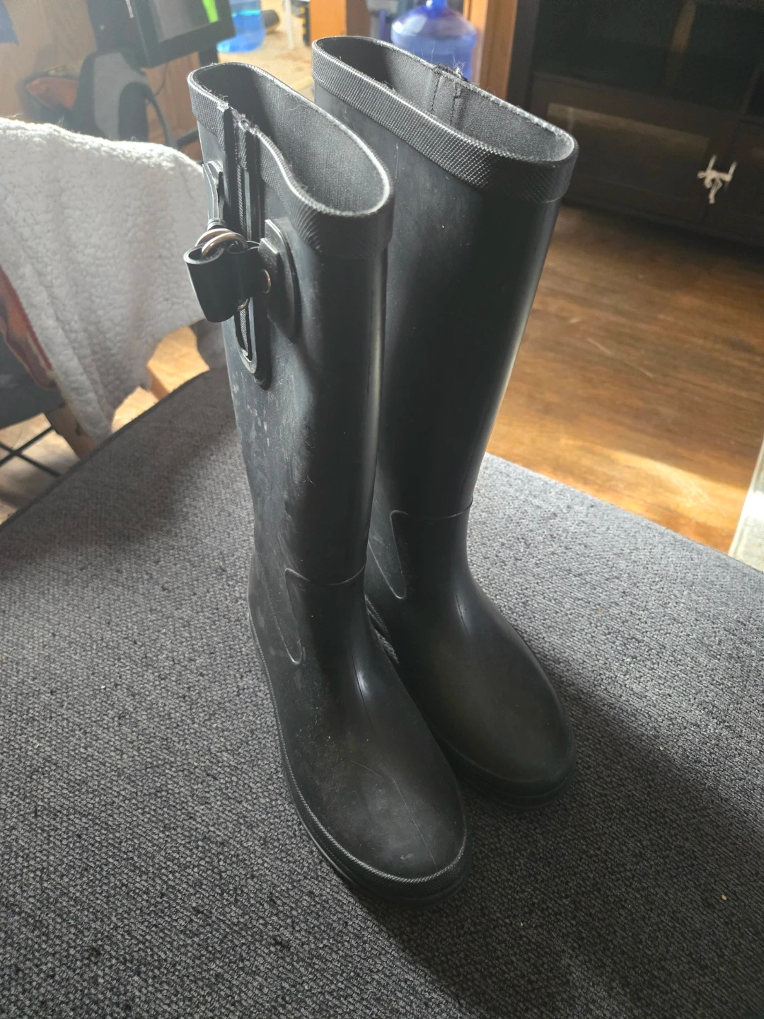 Buy & SellBlack Rubber Rain BootsBlack Rubber Rain Boots$10These are black rubber rain boots. They're tall and waterproof. The boots are a size 7, used once. ConditionLike newSize7WHERE TO MEETS7K 0R1View MapSELLER150767City Park100 reviews0 chats·1 favorites·13 viewsSEND CHAT TO SELLERHi 150767! I’m interested in your listing.Hi 150767! I’m interested in your listing.Get the Karrot app to chatSign In to chat