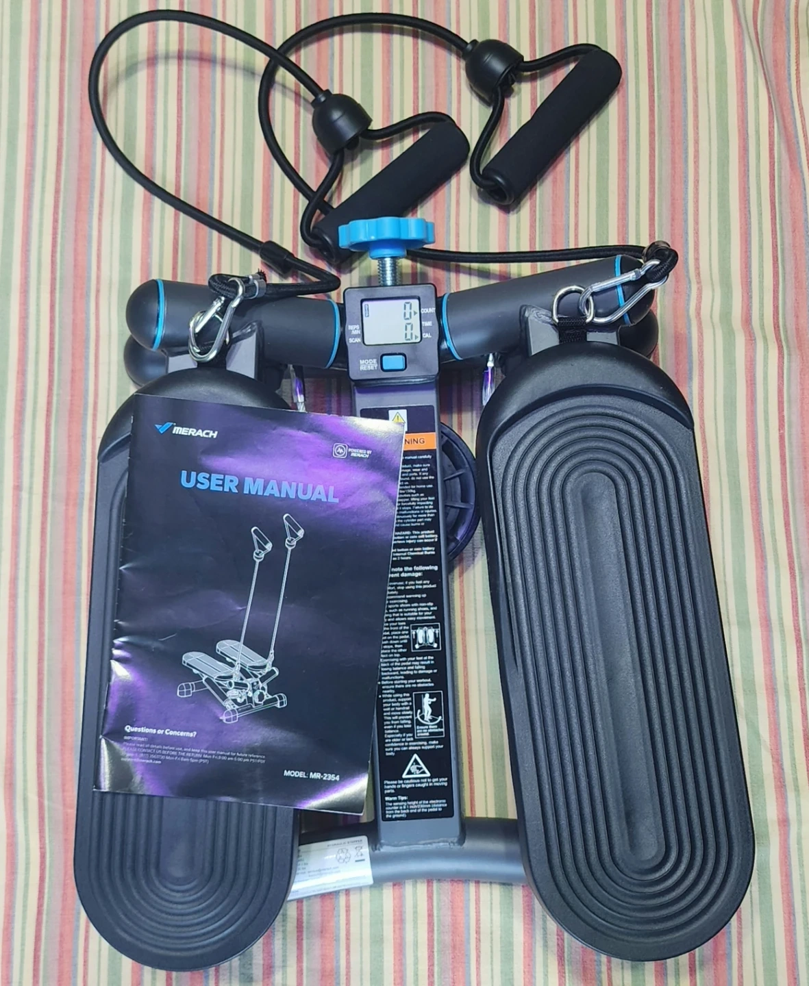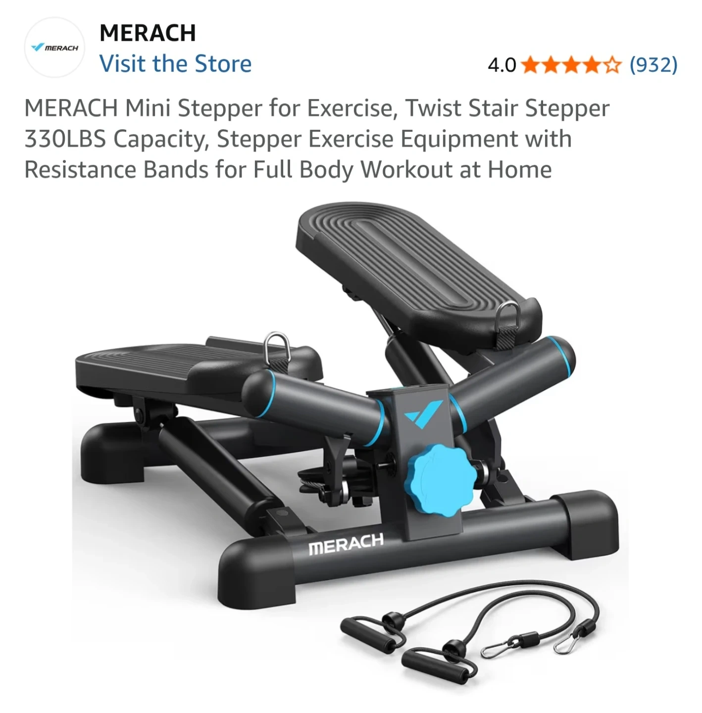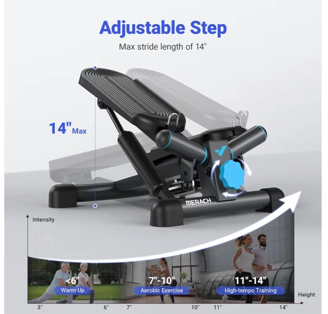 Selling a MERACH mini stepper is great for a full-body workout at home. It has adjustable step height and comes with resistance bands for added intensity. Max stride length is 14".