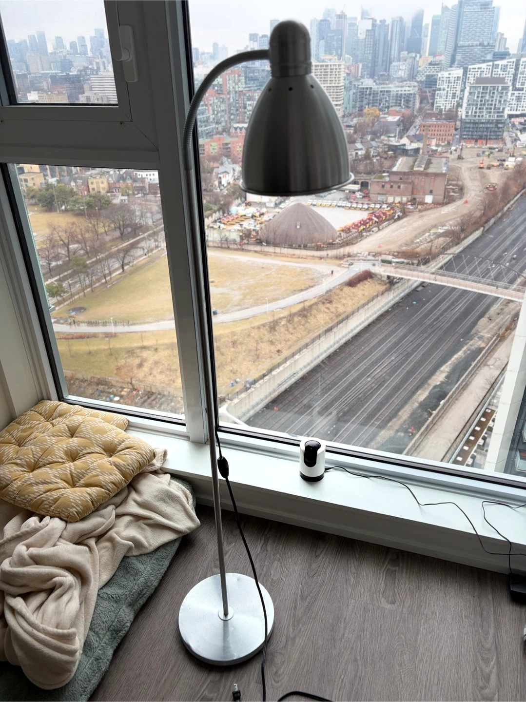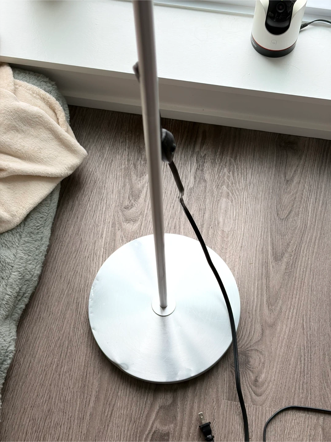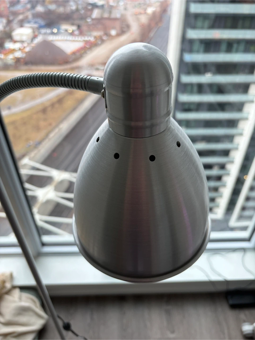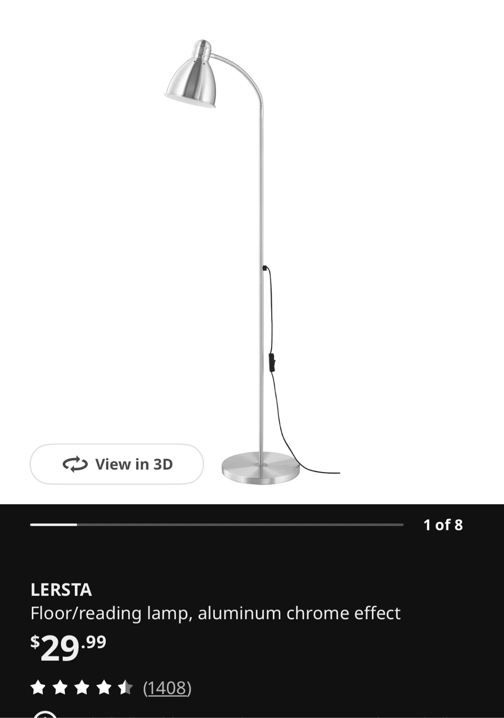 This is the IKEA LERSTA floor/reading lamp. It features an aluminum chrome effect finish and a flexible gooseneck for adjustable lighting. It's perfect for directing light precisely where you need it for reading or tasks. Lamp is in good working condition!