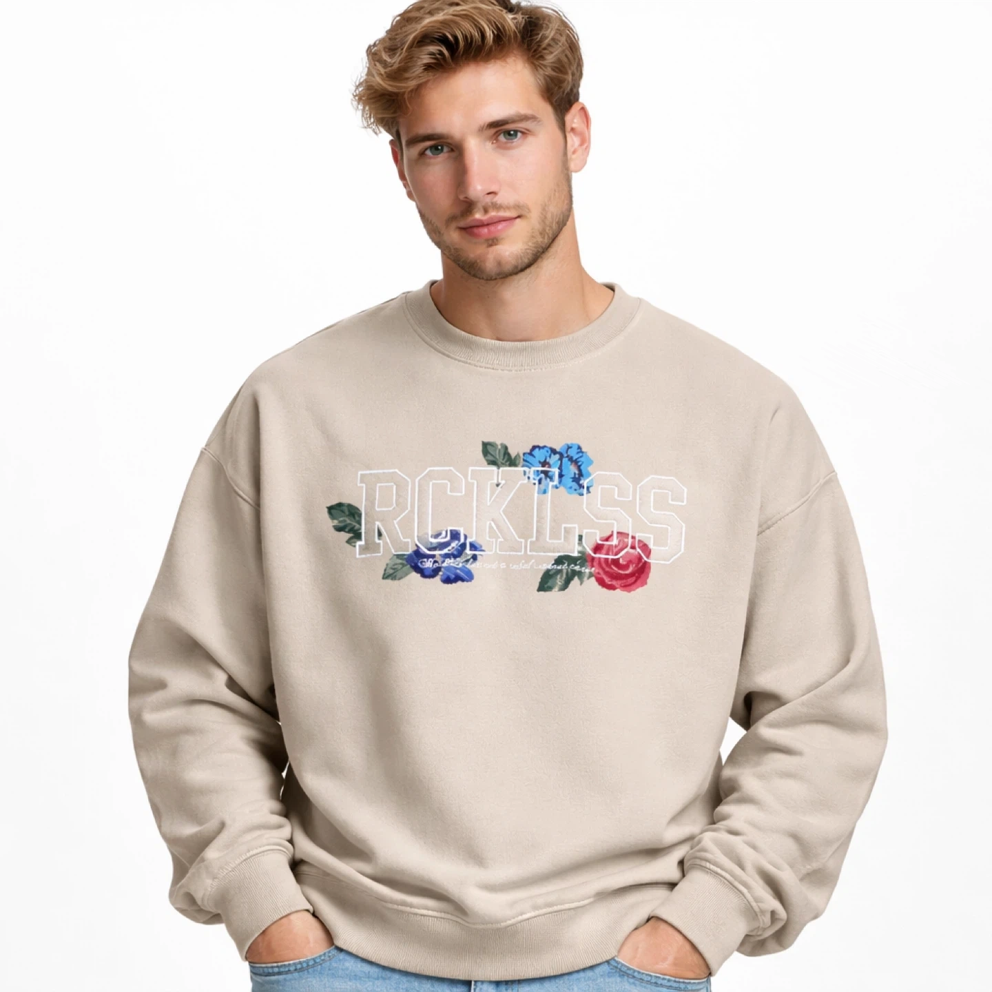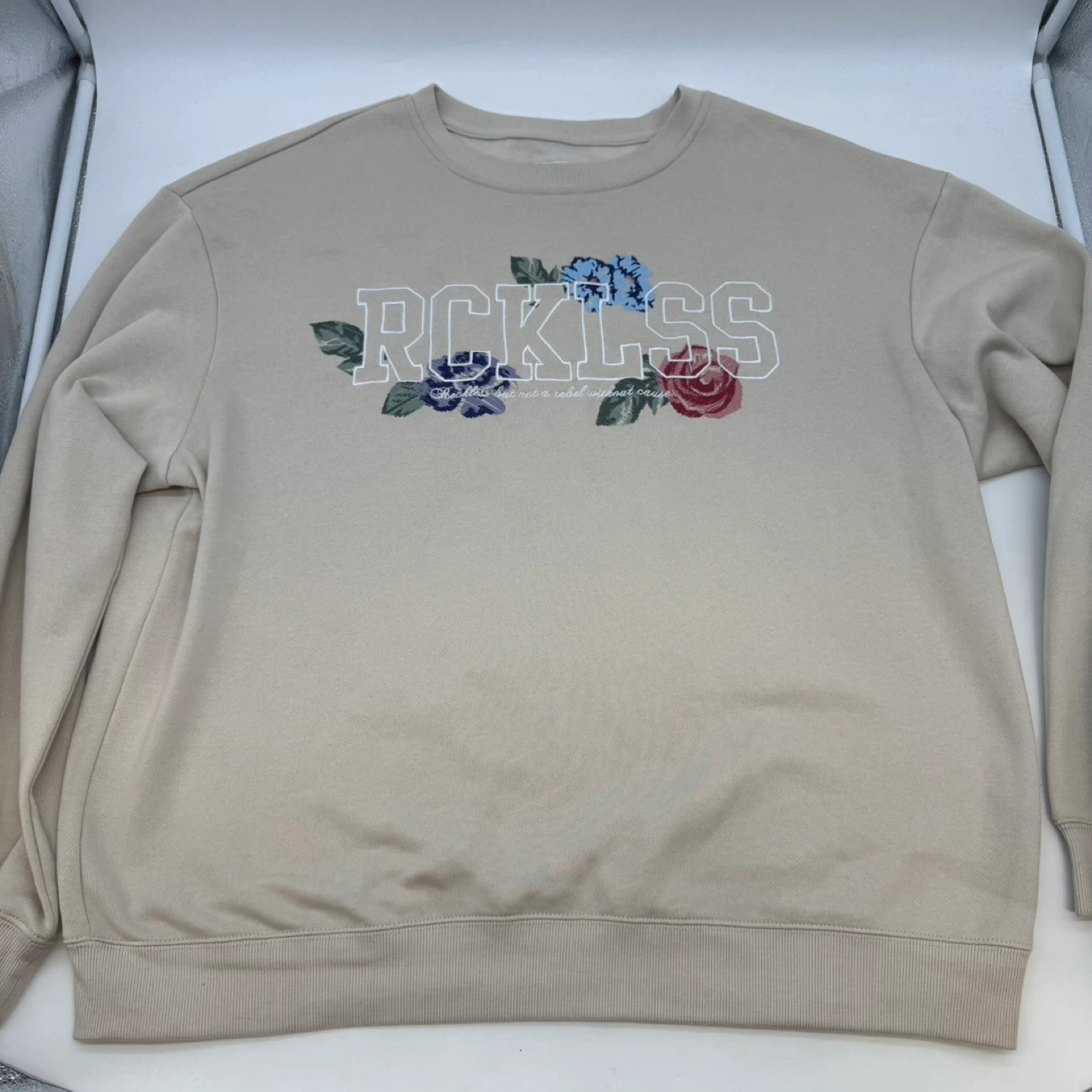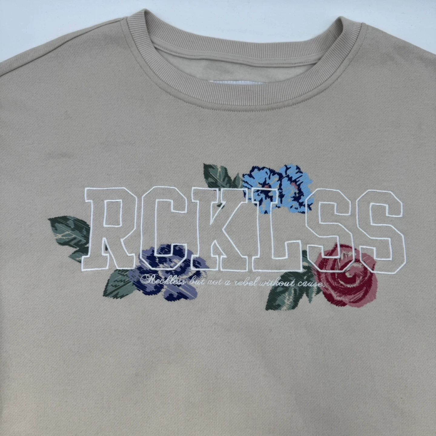 Urban Man men’s crewneck sweatshirt in beige/sand color featuring a floral “Reckless” graphic print on the front. Designed in a relaxed, oversized fit with a classic crew neckline, ribbed cuffs, and ribbed hem. Soft and comfortable fabric blend, perfect for casual and streetwear looks. Condition: Like new — clean and well maintained. Size: XL (US) Material: 65% Polyester / 35% Cotton Made in: China ⸻ 📏 Measurements (laid flat) • Length: 68 cm • Shoulder Width: 64 cm • Sleeve Length: 63 cm • Pit to Pit: 72 cm Please compare these measurements with a similar garment you own to ensure proper fit. 📍 Pickup in North york Delivery available for extra 984 CLW4