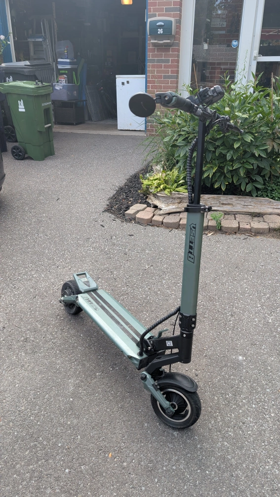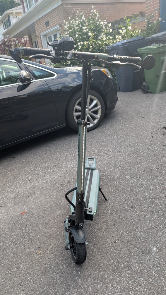 15Selling my Vsett 8 electric scooter. It's in great condition and ready for some fun rides! The scooter features a digital display and a card reader for added security. Perfect for getting around town or Food Delivery! Speed: 40 km/h Max Max Range: 55 km (34 miles) Weight: 20 kg (46 lbs) Motor: 48V 600W Nominal / 1200W Peak Battery: 48V 15.6Ah Max Load: 120 kg (265lbs) Max Incline 18 degrees Suspension: Front and Rear Spring Brakes: Front and Rear Drum Brakes Tires: 8.5" tube and solid tire Water Resistance: IP54