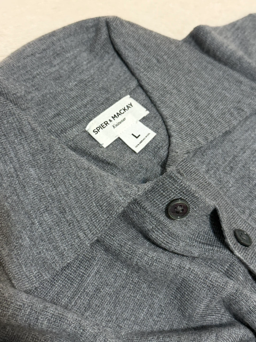 Spier & Mackay knitwear sweater. It's a size large, made with 100% merino wool. This sweater has a button collar design. It's great for layering during cooler weather!