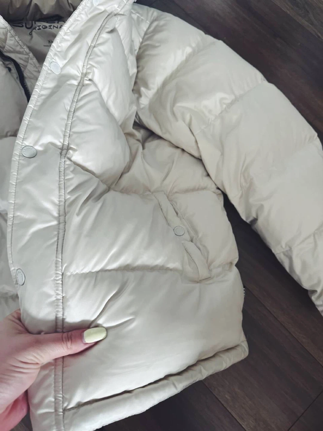 Selling my Aritzia The Super Puff™ (Satin Flex) in Matte Pearl, size XL.