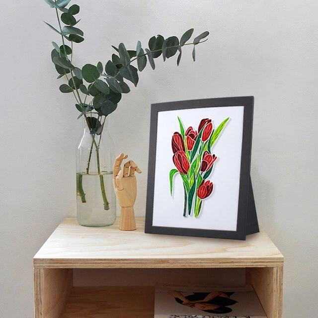 PaperTalk Tulips Handmade Frame Paper Quilling 3D Wall Art. New in the box. With framed stand. I have 4 of these available. I also have a couple Christmas paper quilling kits as well. Let me know if you're interested!