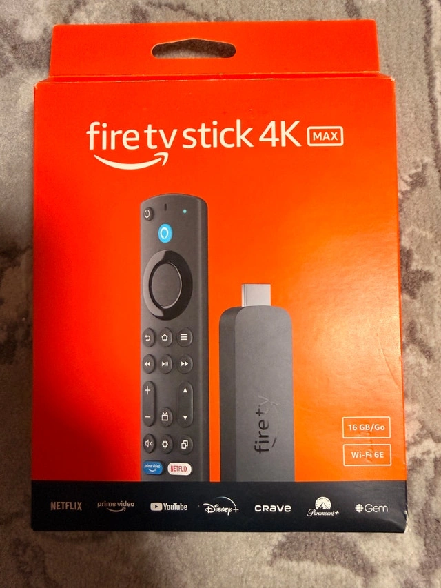 Elevate your entertainment experience with a powerful processor for lightning-fast app starts and fluid navigation. Enjoy the show in 4K Ultra HD, with support for Dolby Vision, HDR10+, and immersive Dolby Atmos audio. Enjoy smoother 4K streaming with Wi-Fi 6E support, even when other devices are connected to your router. The first-ever streaming stick with Fire TV Ambient Experience lets you display over 2,000 pieces of museum-quality art and photography. Fire TV Stick 4K Max has 16GB of storage—double that of Fire TV Stick 4K Plus and our other streaming sticks, for even more apps, games and downloads. Stream more than 1.2 million movies and TV episodes. Watch favourites from Netflix, Prime Video, Disney+, Crave, and more, plus listen to millions of songs. Subscription fees may apply.