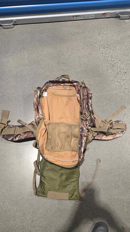 Hunting bag used twice. Clean and everything works as it should. Approx 40L capacity, lots of pockets inside and outside with internal water bladder pocket too. Similar to picture from Cabela's website as this one is discontinued.
