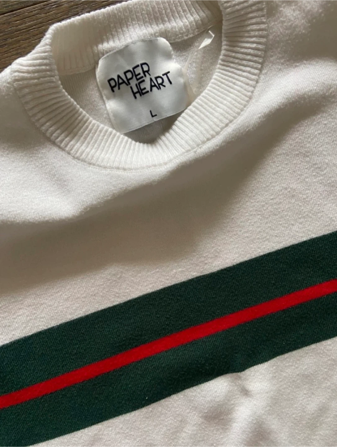 EUC Cream Cropped Sweater w Stripes by Paper Heart L