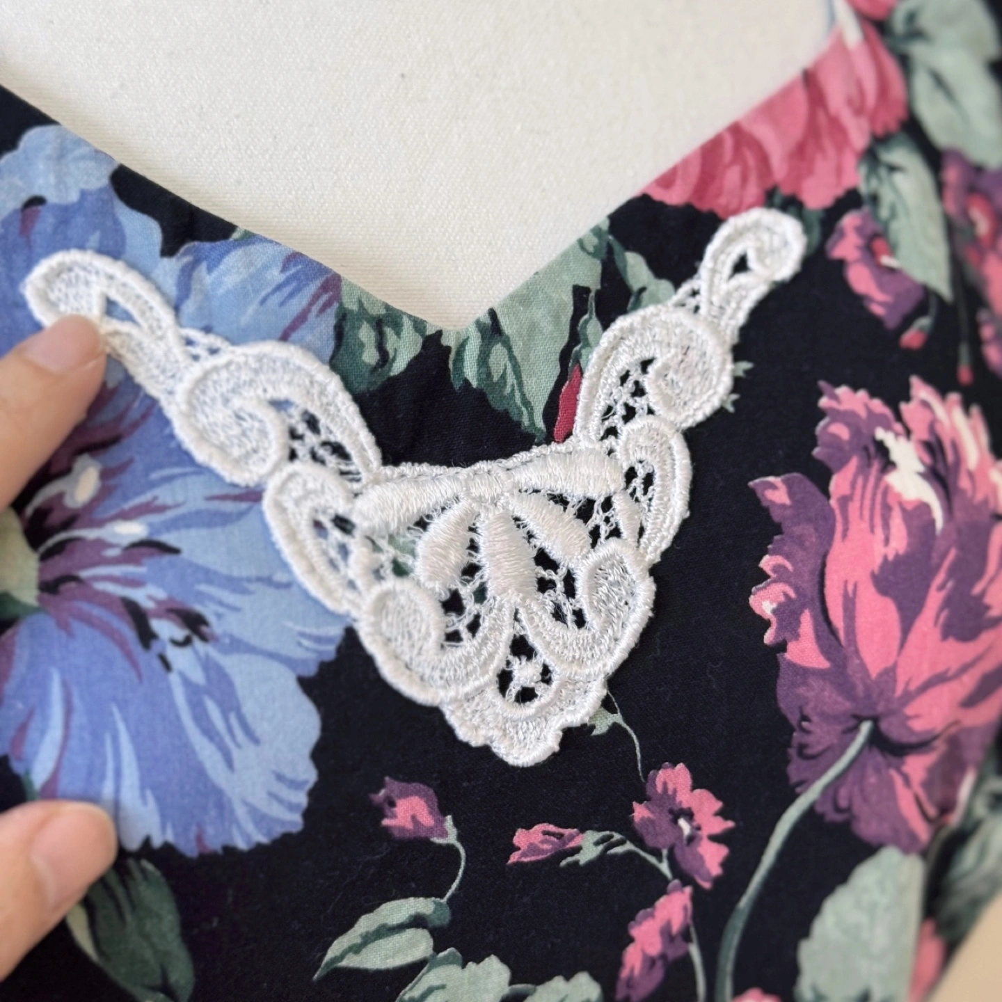 • Lace trim details on the neckline and hem
