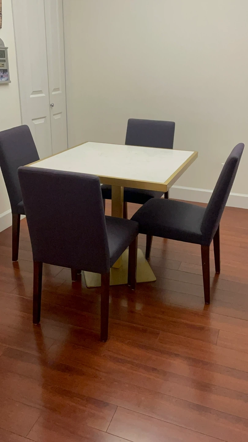 Quartz top dining table and 4 dining chairs. I’m great condition.