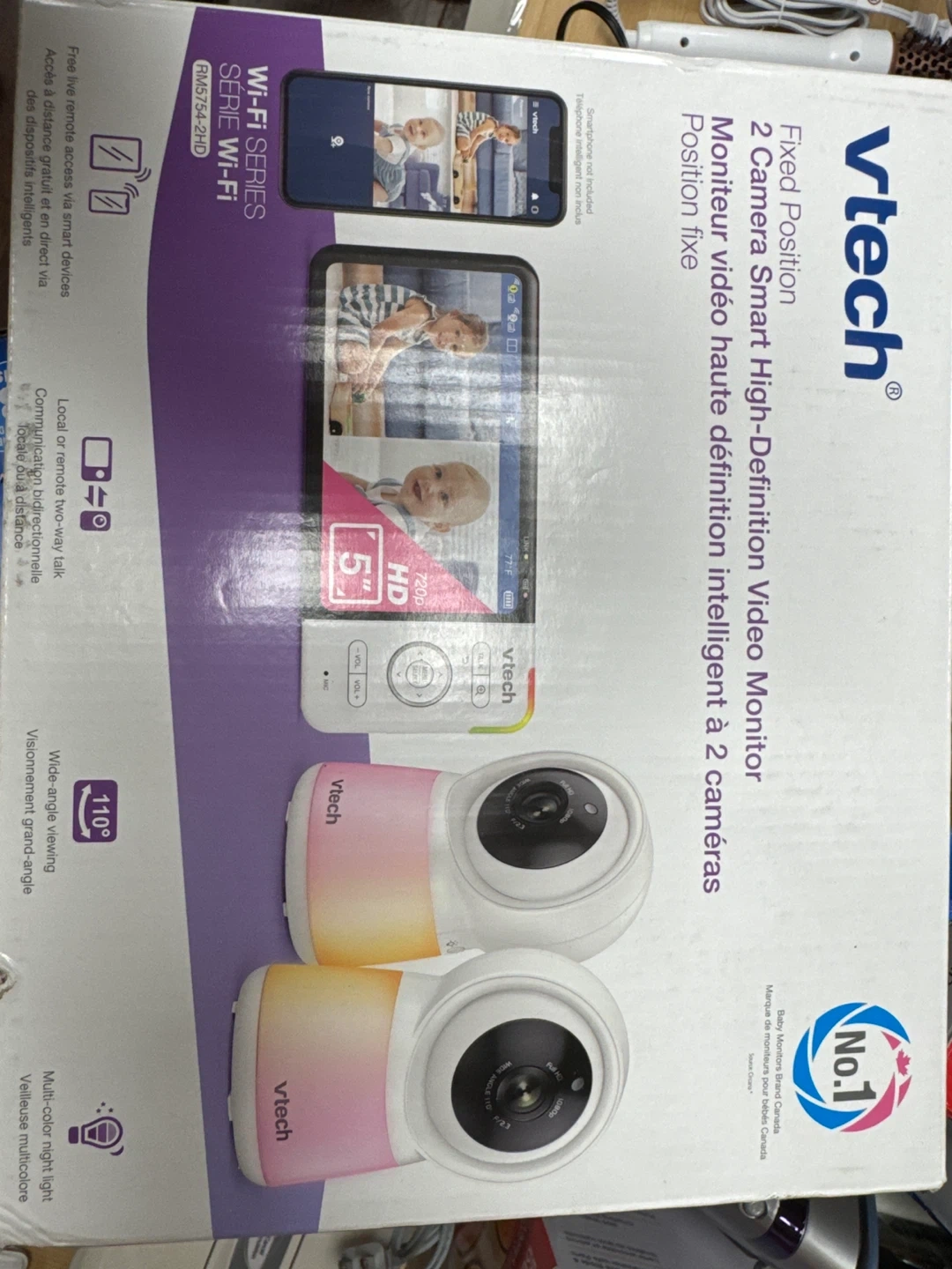 40Selling a VTech fixed position, 2 Camera Smart High-Definition Video Monitor. It features wide-angle viewing and multi-colour night light. It also has local or remote two-way talk at a distance. The box is included!