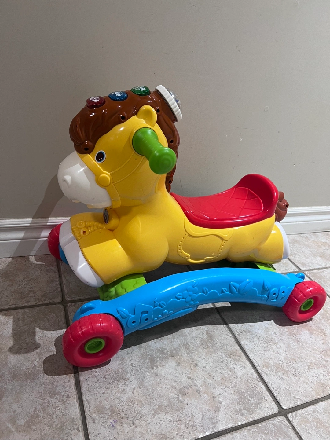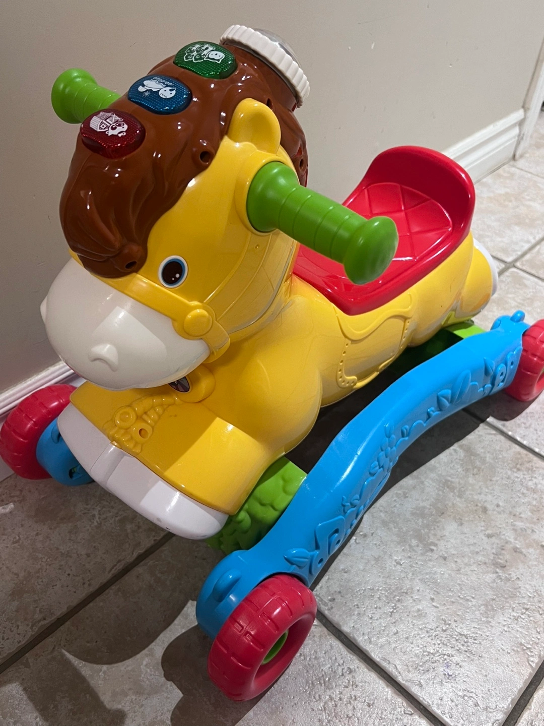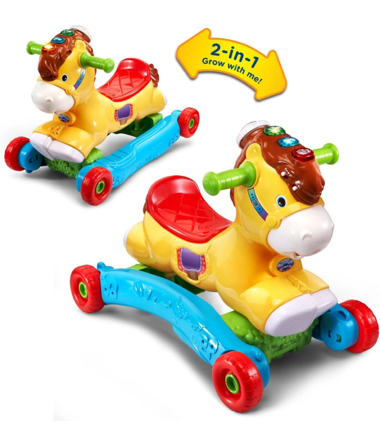 This VTech 2-in-1 Grow with Me Pony is perfect for toddlers! It easily converts from a rocker to a ride-on toy, so it grows with your child. It's in great condition and ready for a new home!