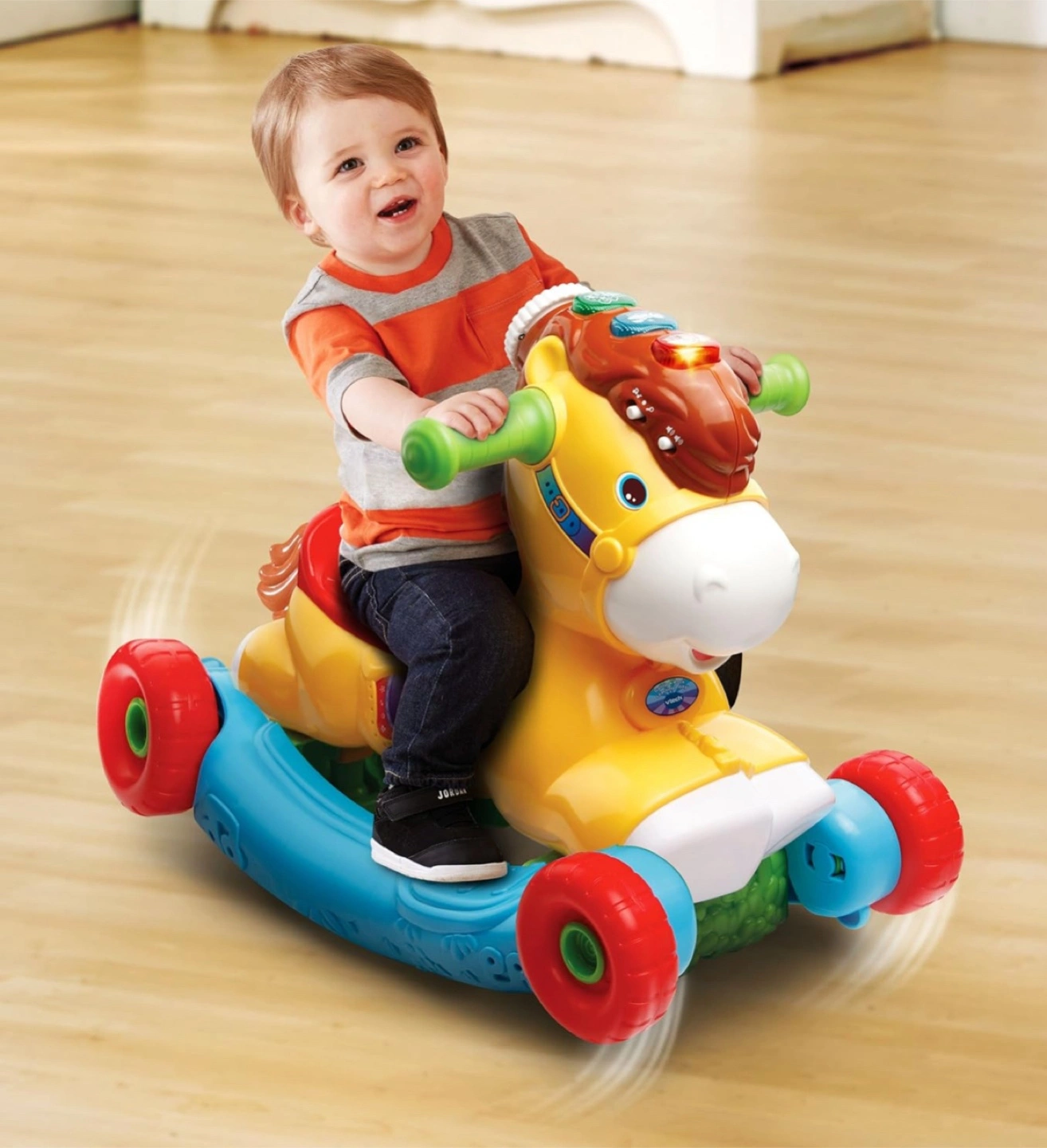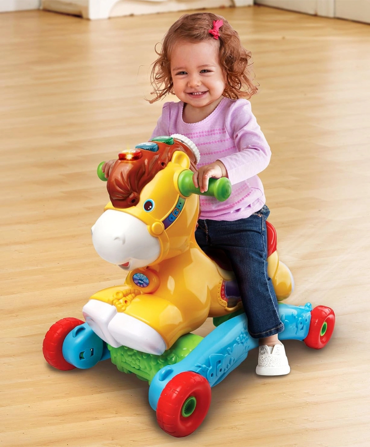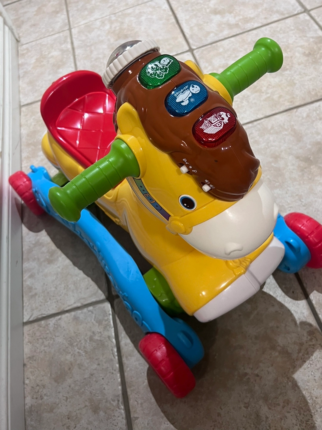 This VTech 2-in-1 Grow with Me Pony is perfect for toddlers! It easily converts from a rocker to a ride-on toy, so it grows with your child. It's in great condition and ready for a new home!