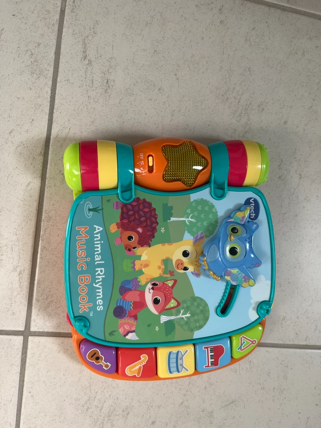 10Check out this VTech Animal Rhymes Music Book! It's in great shape and ready for a new home. Your little one will love the colourful pages and fun songs. It's perfect for learning about animals and music. Working and batteries included.
