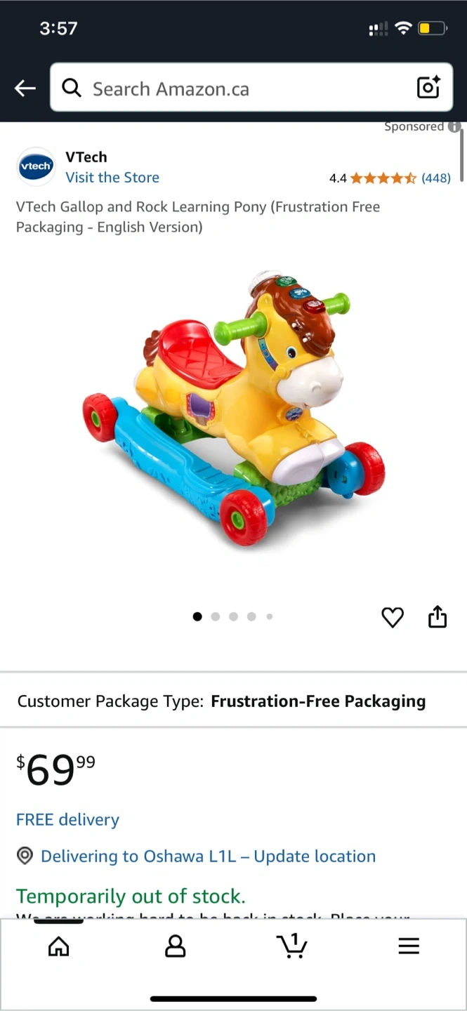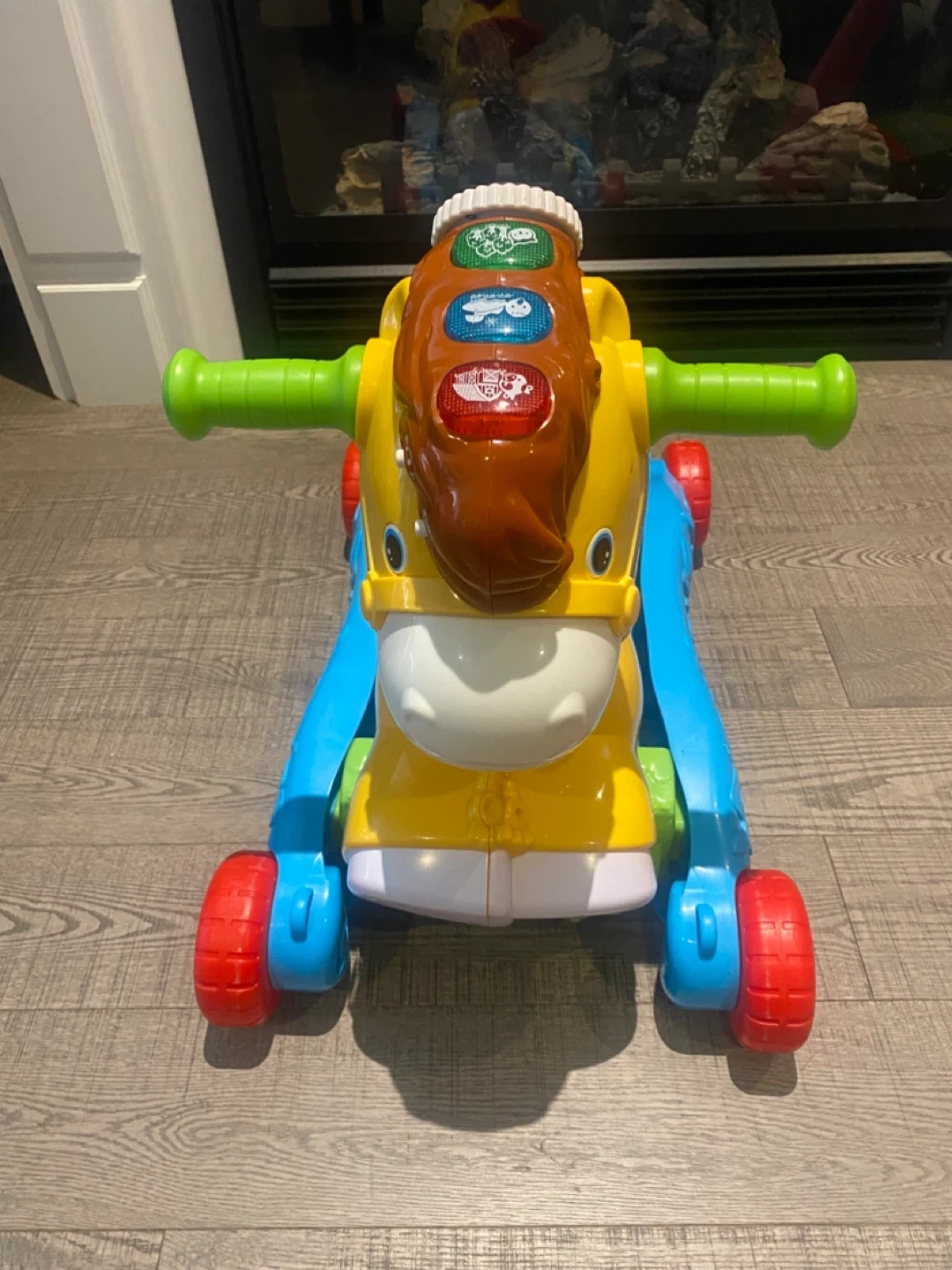 0This VTech Gallop and Rock Learning Pony is perfect for little ones! It's in great condition and ready for a new home. Originally bought for $69.99. Your child will love galloping and rocking on this fun toy!