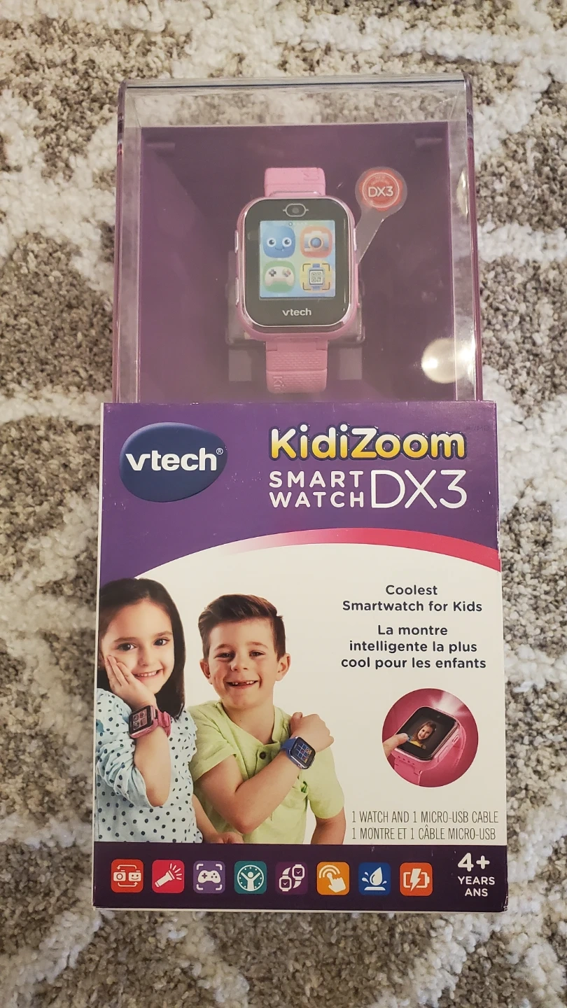 10Selling a VTech Kidizoom Smartwatch DX3, perfect for kids aged 4 and up! This is the coolest smartwatch for kids, with lots of fun features. Includes 1 watch and 1 micro-USB cable.