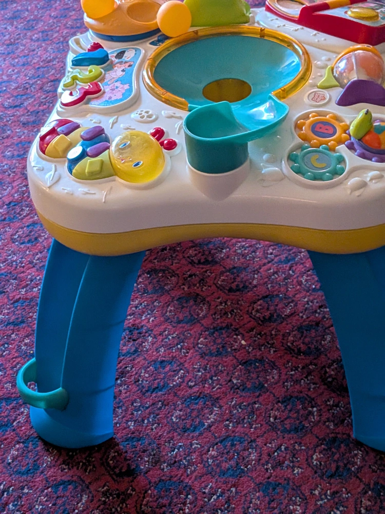 Selling a VTech Sit-to-Stand Learn and Discover Table. This interactive table is great for little ones who are learning to sit and stand. It features various activities and sounds to keep your child entertained and engaged. Perfect for early learning and development! 3 lightweight balls to put in spinner and will run down one down to the bottom of the legs. The ball is then stopped at the bottom and Child retrieves it and outs more in the top spinner. Child looks at bottom of legs to find the ball. The legs fit easier to attach to bottom of fun table. FCFS Cross posted pickup location Oxford and Wonderland please checkout my other listings