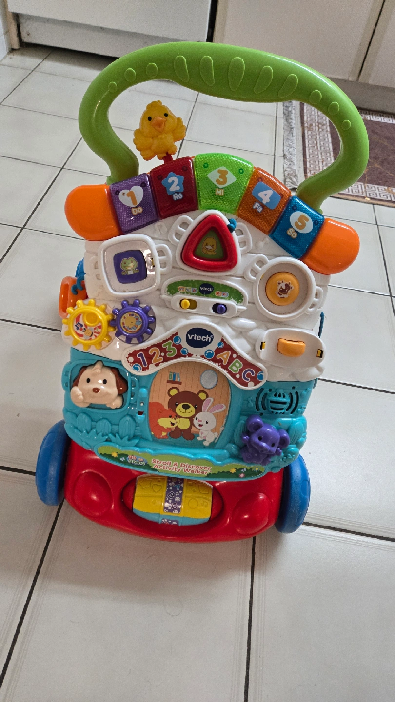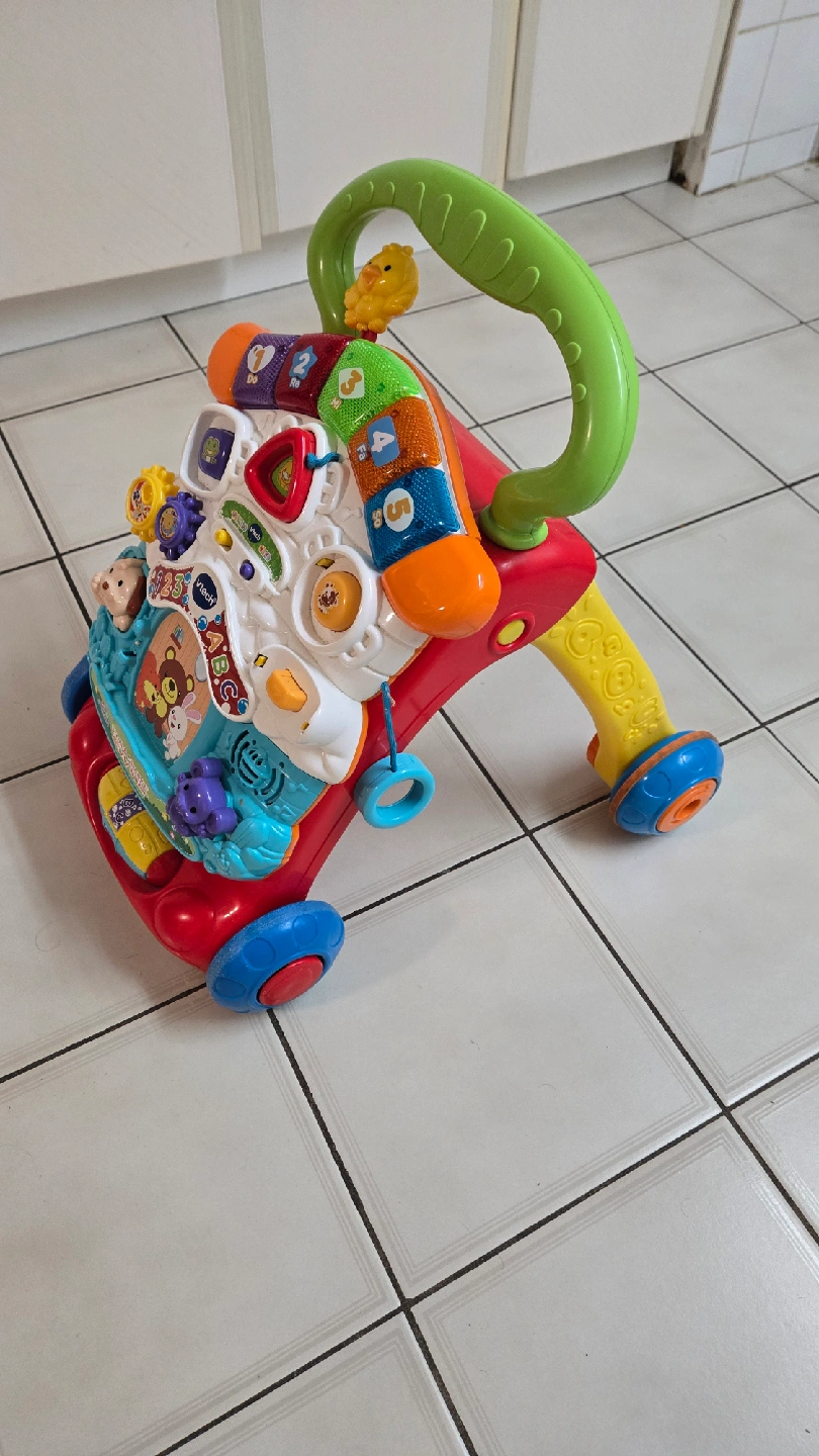 This VTech Sit-to-Stand Learn Walker is perfect for little ones learning to walk! It's in great condition and ready for a new home. The walker features a variety of interactive activities to keep your child entertained while they develop their motor skills. Recommended age range is perfect for babies and toddlers