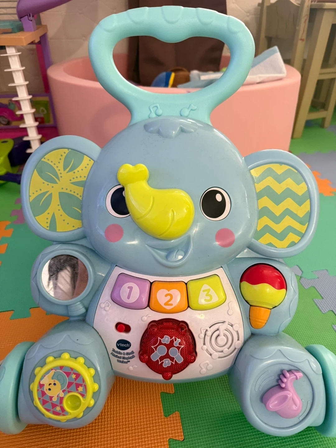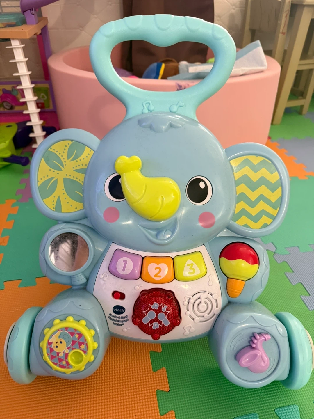 60This VTech Sit-to-Stand Learning Walker is perfect for little ones learning to walk! It's in great condition and ready for a new home. Your child will love the interactive features and fun elephant design