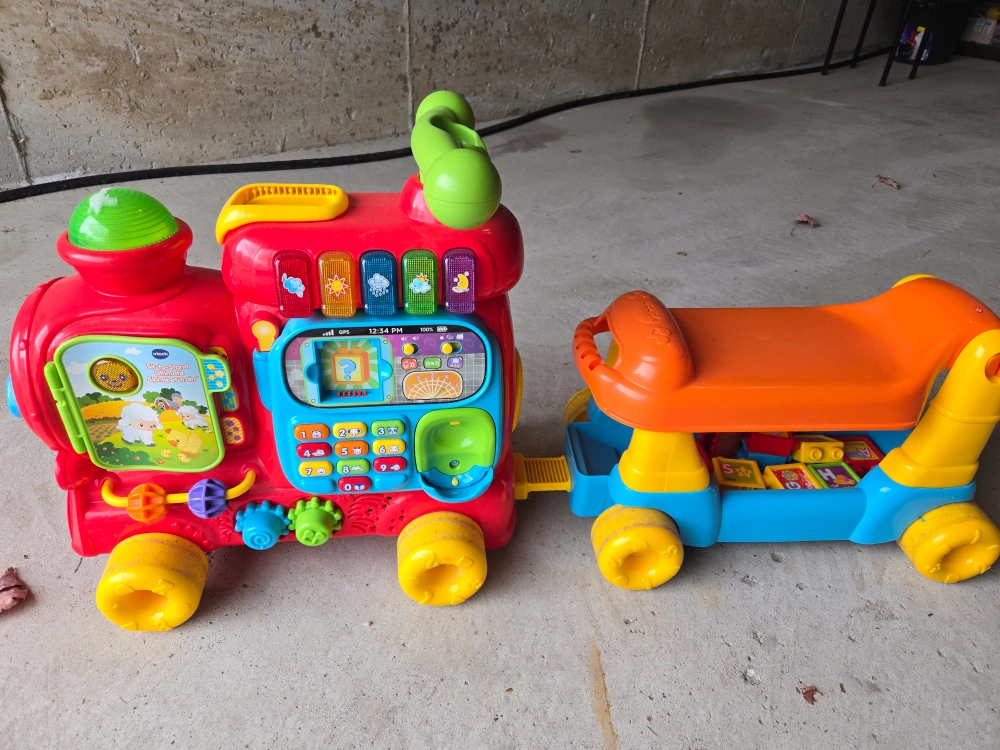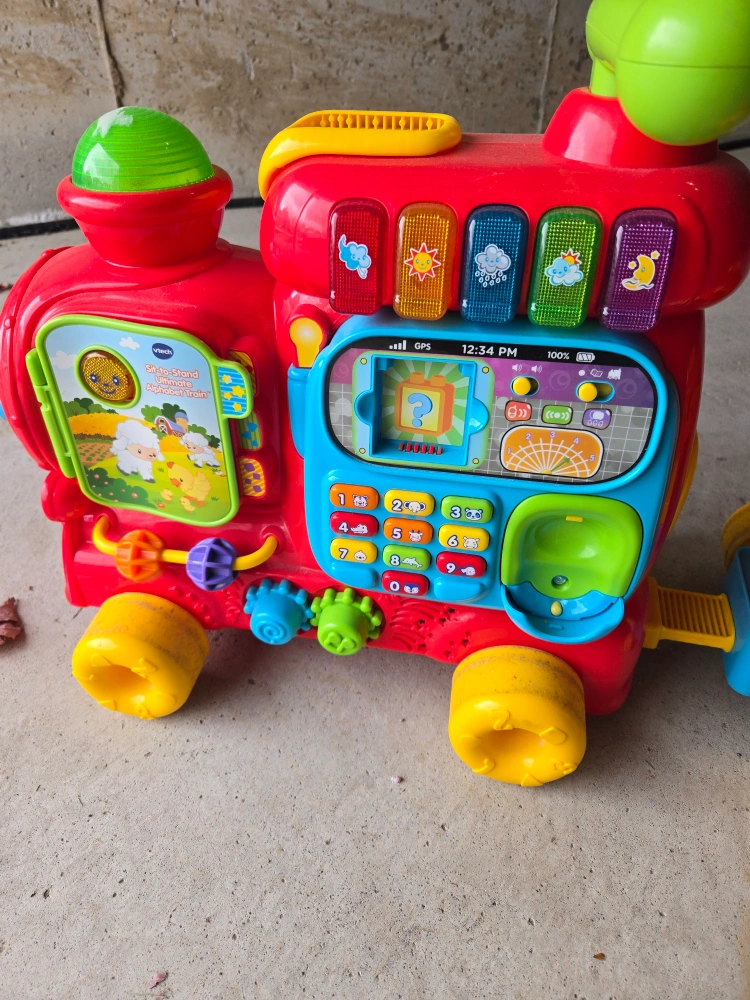 75This is a VTech Sit-to-Stand Learning Walker. It's a fun and interactive toy that grows with your child, starting as a walker and transforming into a ride-on train. It includes lots of buttons, sounds, and activities to keep your little one entertained and learning!