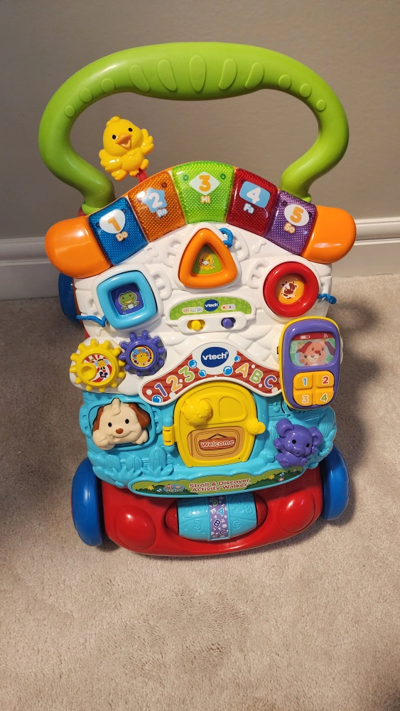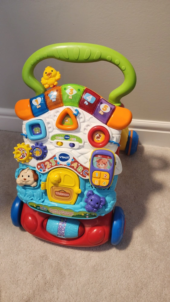Selling a VTech Stroll & Discover Activity Walker! It's in great condition and ready for a new home. This interactive walker is perfect for little ones learning to walk and explore. It features lots of fun activities to keep them entertained and engaged.