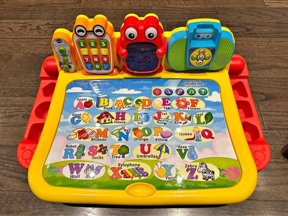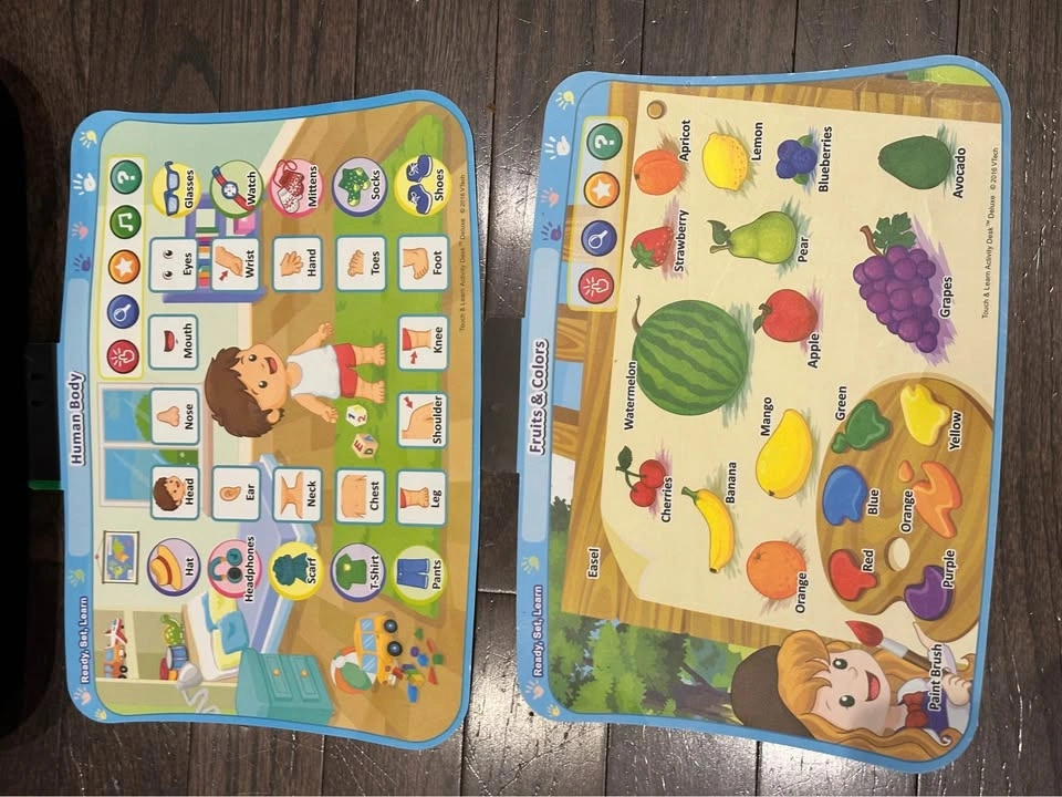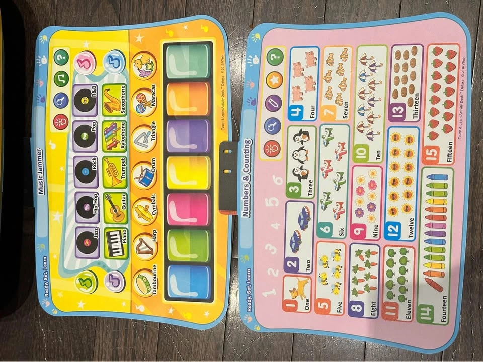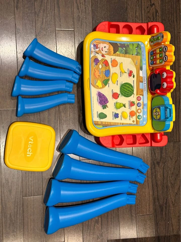 42The VTech Touch & Learn Activity Desk Deluxe is a fun and interactive learning toy for kids! It includes multiple activity cards that teach letters, numbers, fruits, colours, and more. It also transforms from a desk to an easel for even more ways to play and learn. The desk comes with all the legs and the original yellow stool. Only used indoors. Asking $50. Originally $115.99 + tax. Pet & smoke-free home. Cash only