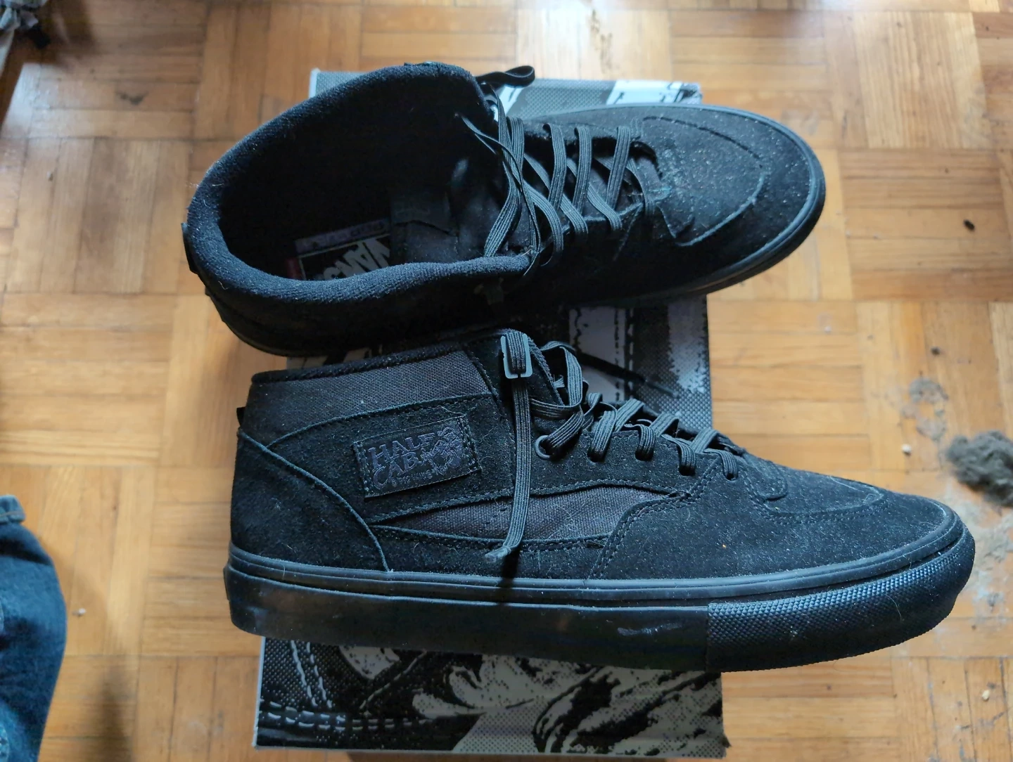 Vans Half Cab skate shoes in black suede. Includes original box. These kicks are ready for some shredding!
