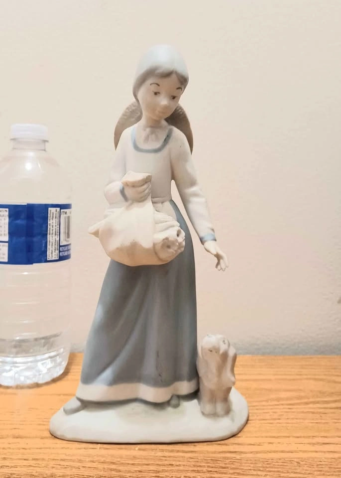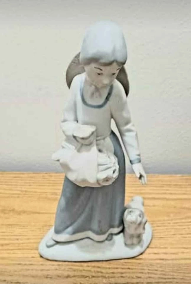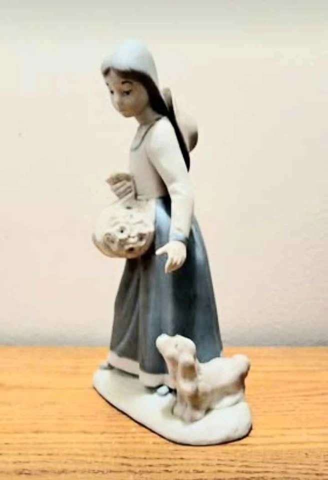 65Vintage MidCentury, Collectible, Very Rare, Stamped, Hand Painted, Porcelain Rex Valencia Sculpture Woman with her Dog Decorative, Household Water Bottle For Size Reference Mint Condition, no chips or cracks Please check out my other rare collectibles!