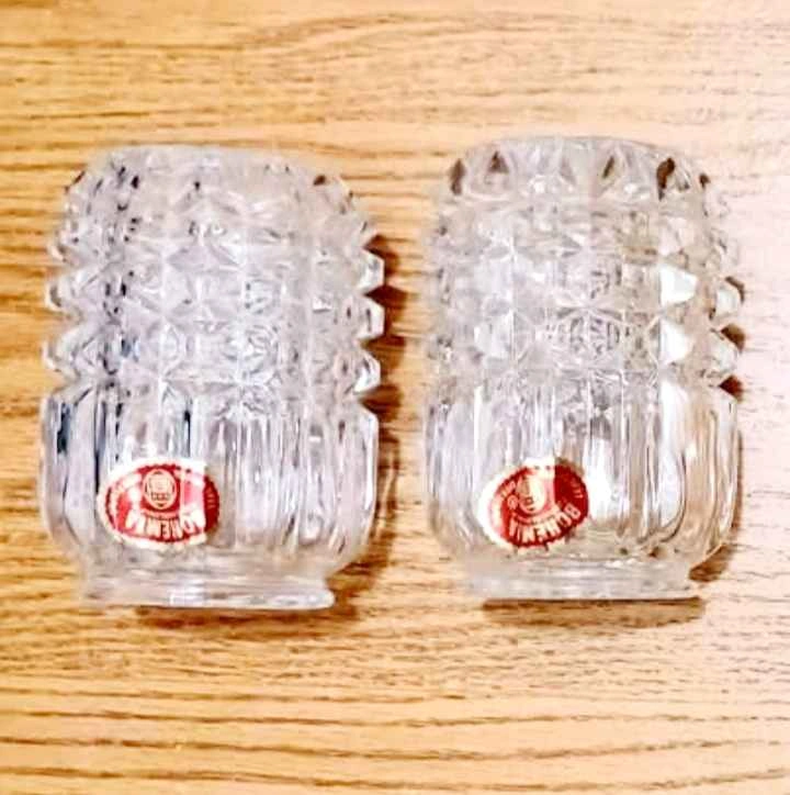 65Vintage, Rare, Bohemian Crystal, Clear Cut 24 % Lead Crystal, Glass Art Pair of Bohemian Candle Holders Brand New In Box, Never Used Height : 10 cm - 4" Made in Czechoslovakia Excellent Condition with Stickers Price / Pair Please check out my other rare collectibles!