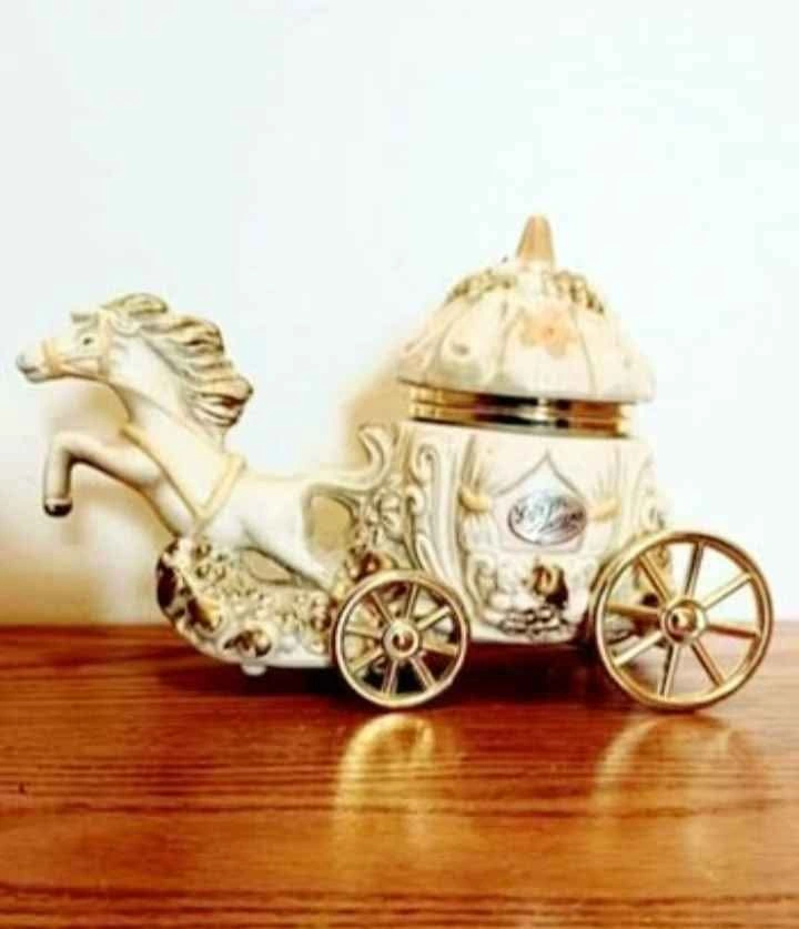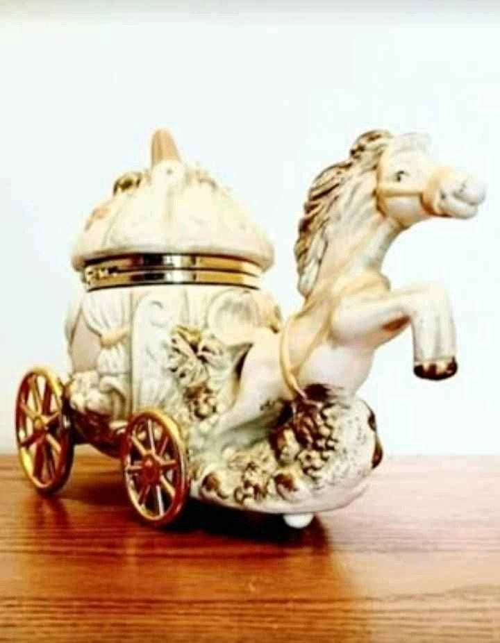 65Vintage, Rare Stamped Italian , Collectible,Stunning , Lorens Carriage Made Executive Trinket Box & Decorative, Textured Porcelain Figurine Mint Condition , no chips or cracks Please check out my other unique items!