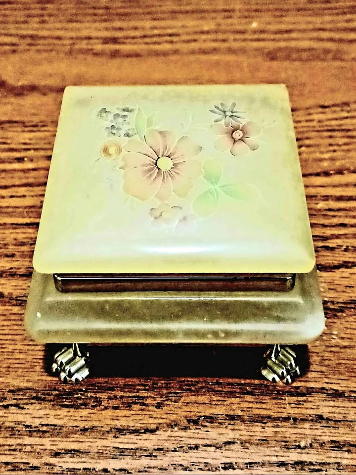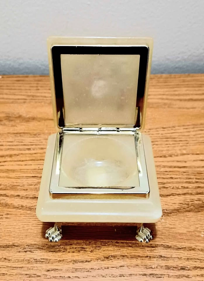 Vintage, Very Rare, Mid Century Italian Hand Carved, Floral, Genuine Alabaster, Brass Claw Footed, Trinket Box. Decorative, Household. Very Good Condition, with Sticker. (Large Rectangular One is also available). Please check out my other rare collectibles!